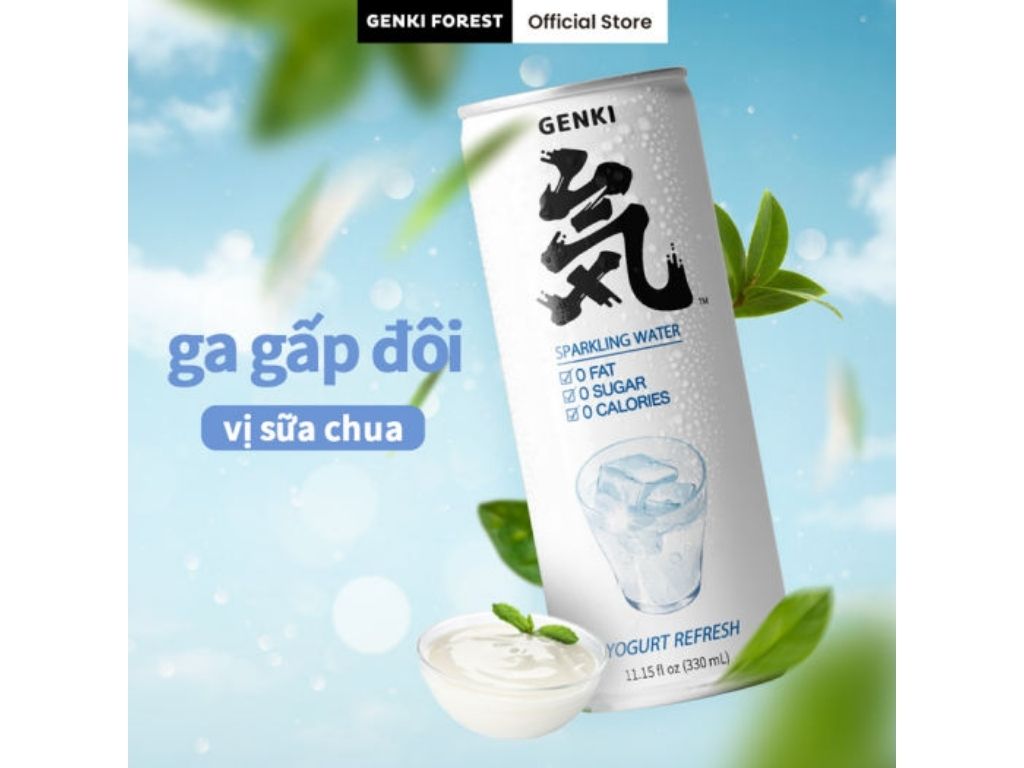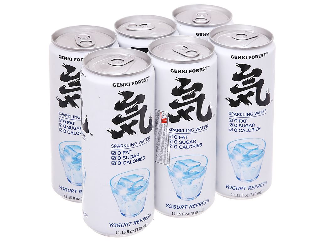 6 lon nước uống có ga GENKI vị sữa chua 330ml