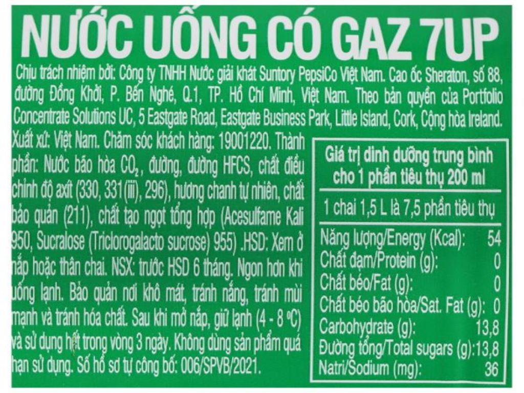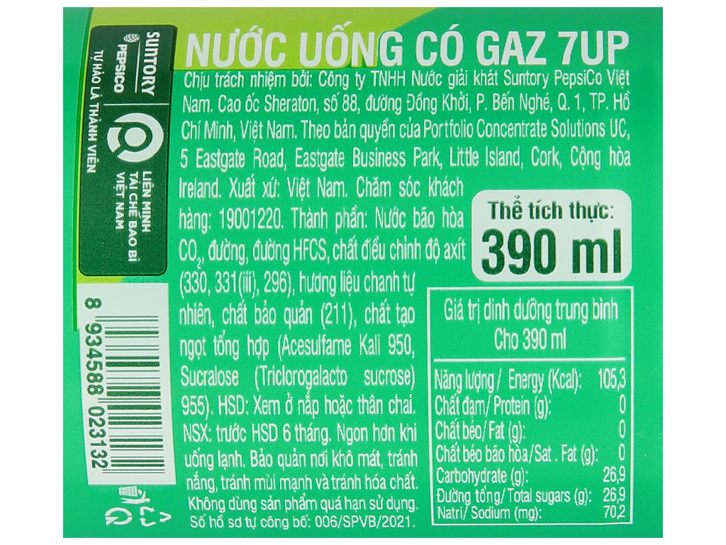 6 chai nước ngọt 7 Up vị chanh 390ml