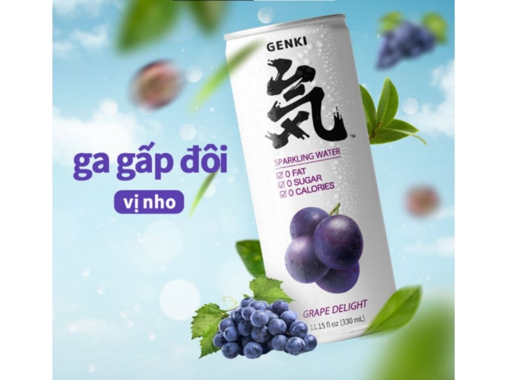 Nước uống có ga GENKI vị nho đen lon 330ml