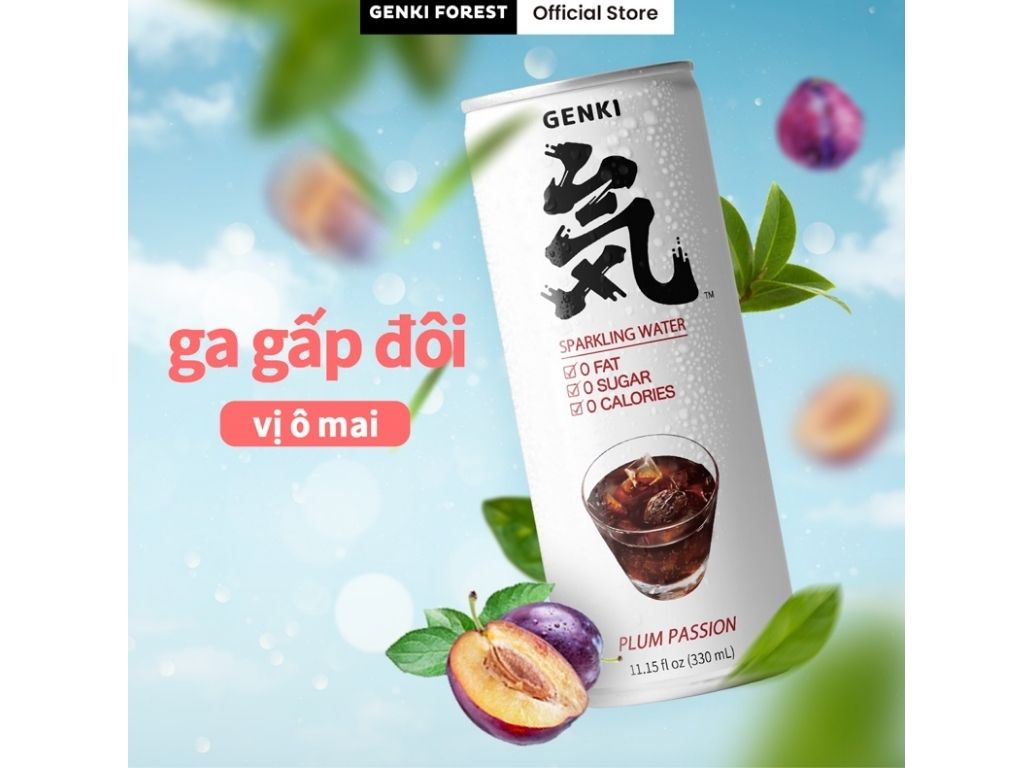 Nước uống có ga GENKI vị ô mai lon 330ml