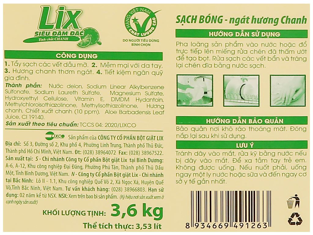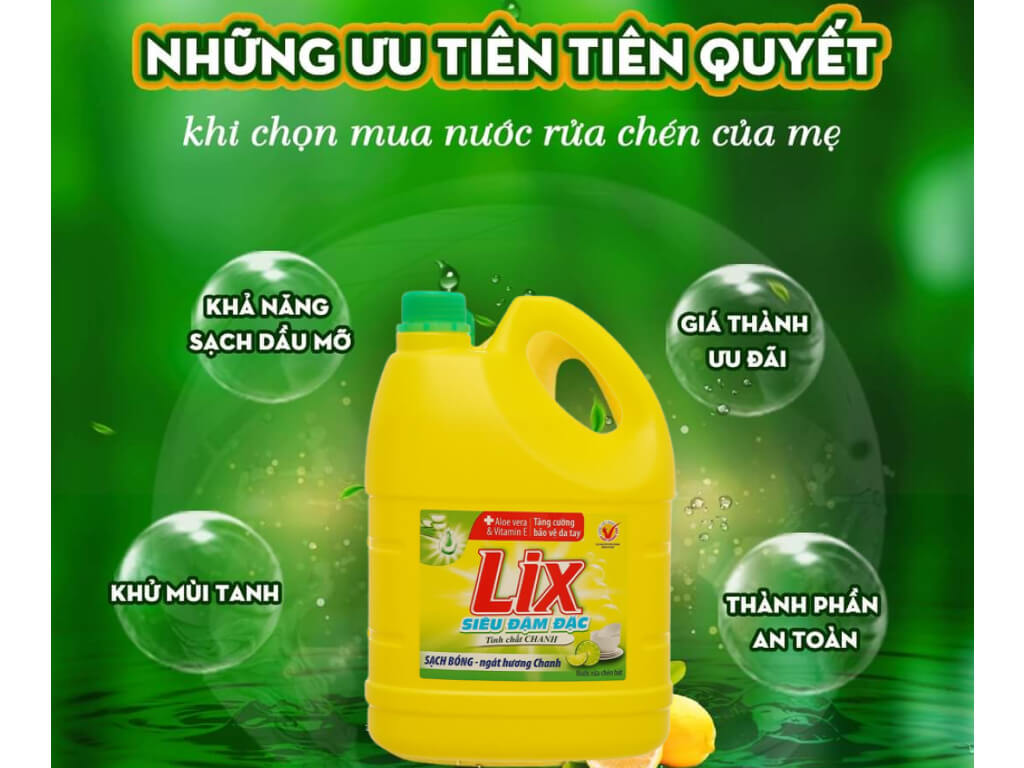 Nước rửa chén Lix siêu đậm đặc hương chanh can 3.53 lít