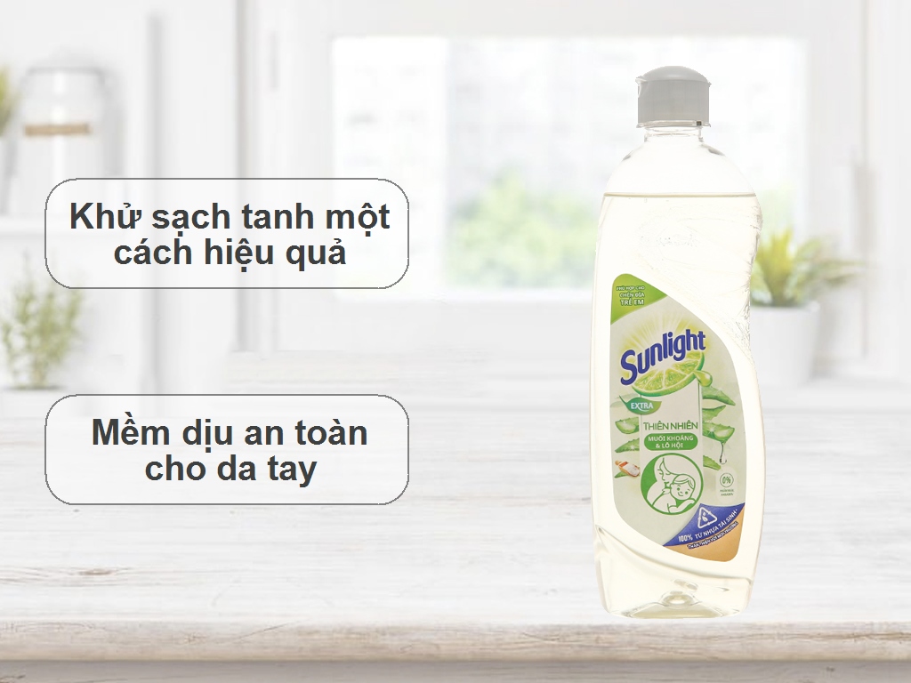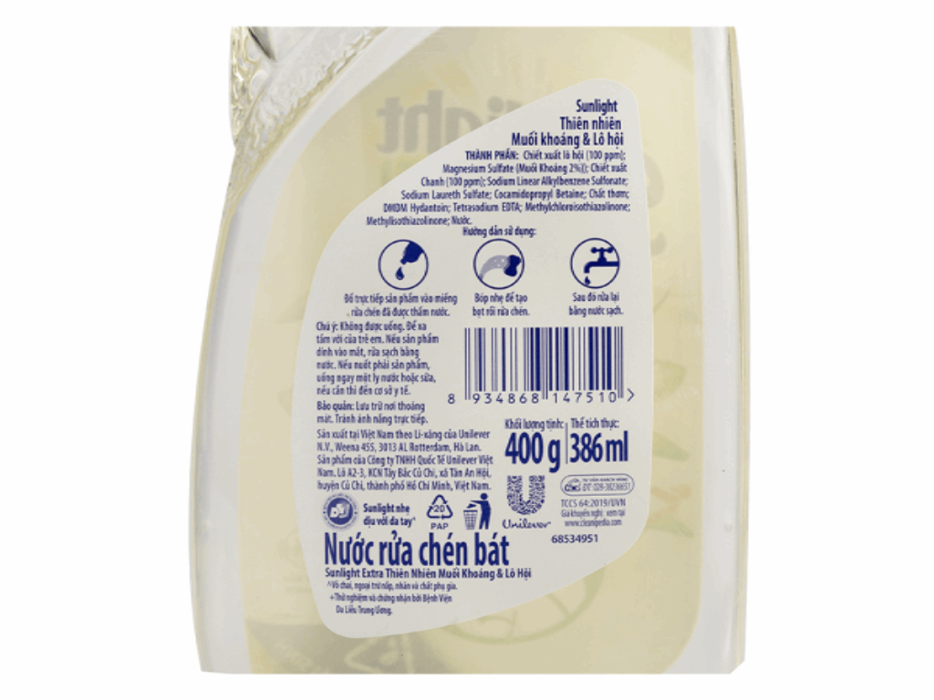 Nước rửa chén Sunlight thiên nhiên muối khoáng và lô hội chai 386ml