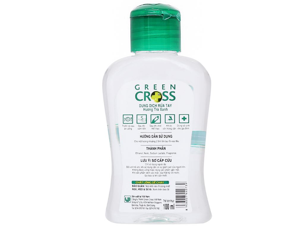 Dung dịch rửa tay Green Cross hương trà xanh chai 100ml