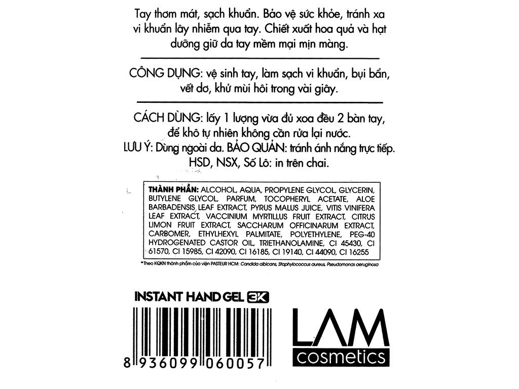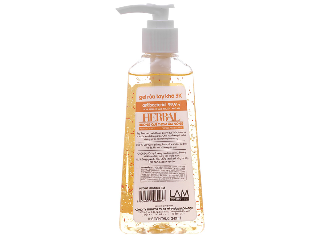 Gel rửa tay khô 3k Lamcosmé hương quế thảo mộc chai 240ml