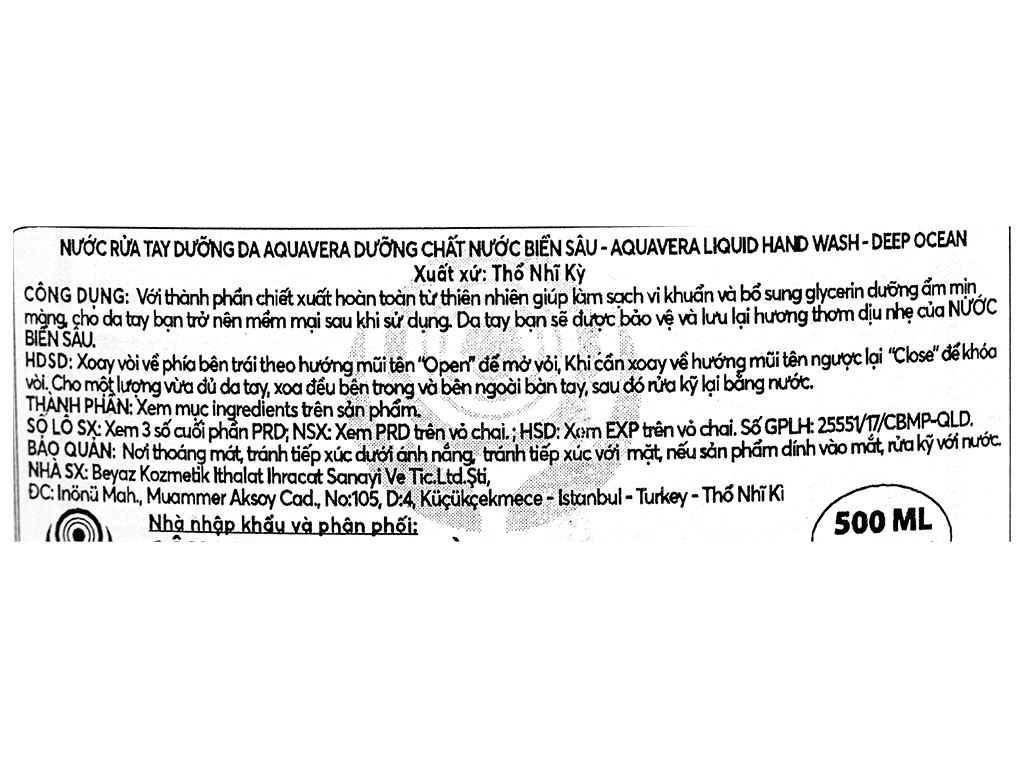 Nước rửa tay Aqua Vera dưỡng da nước biển chai 500ml