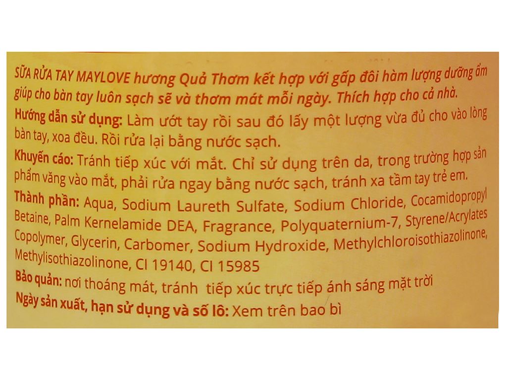 Sữa rửa tay Maylove hương quả thơm chai 500ml
