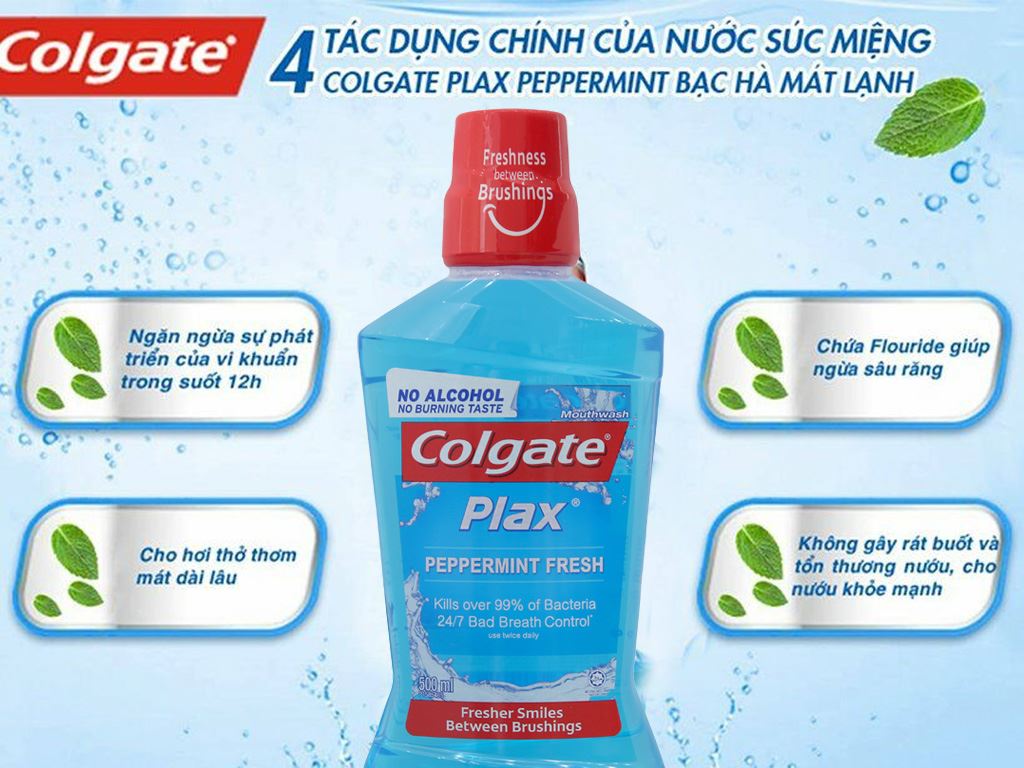Nước súc miệng Colgate Plax Peppermint Fresh bạc hà 500ml