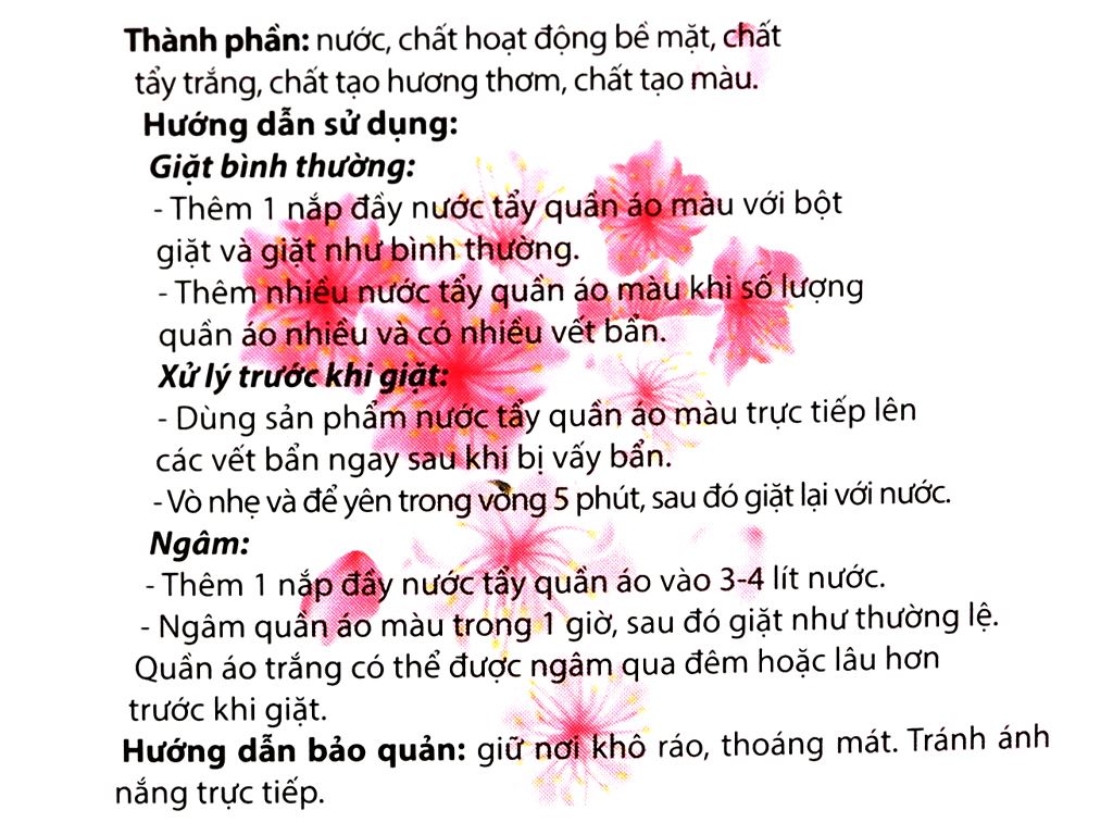 Nước tẩy quần áo màu Vessi hương anh đào 800ml