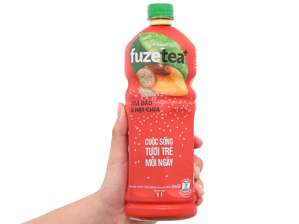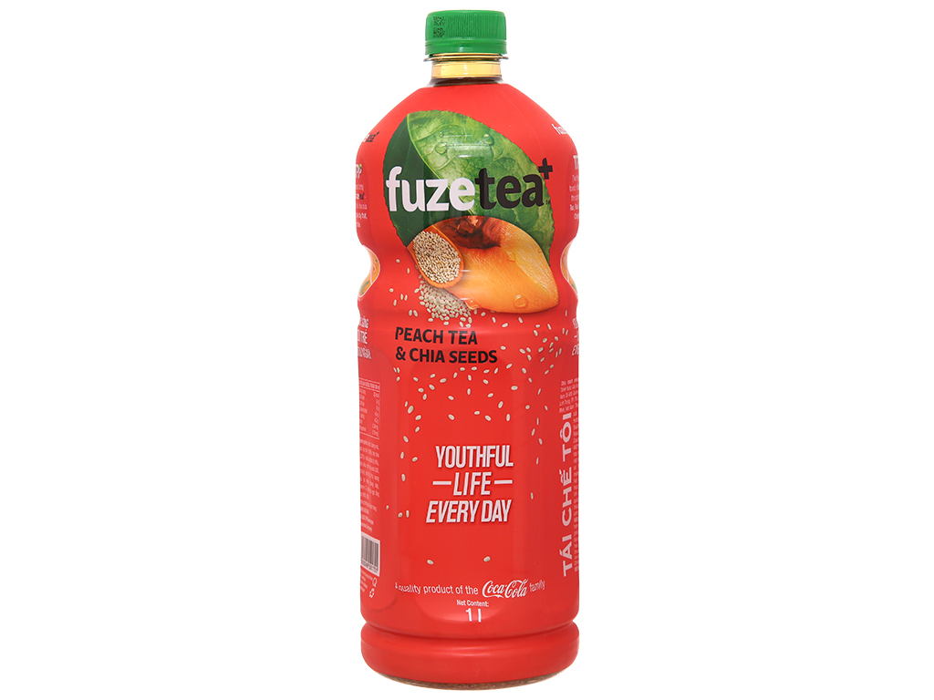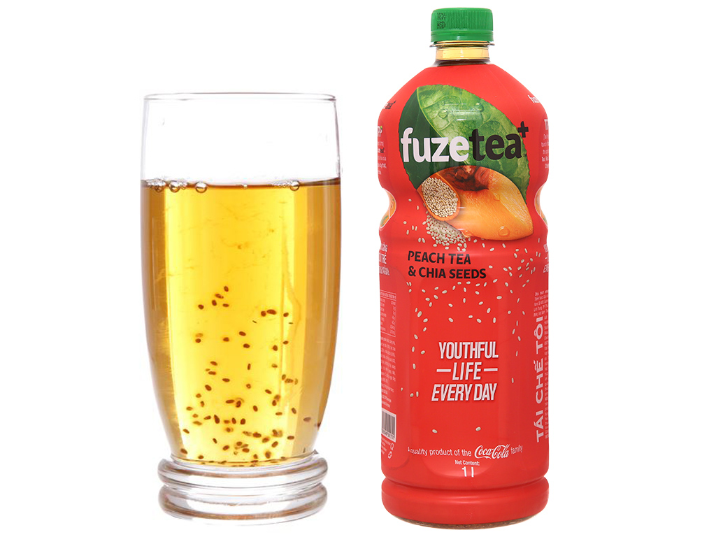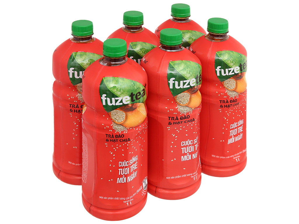 6 chai trà đào và hạt chia Fuze Tea 1 lít
