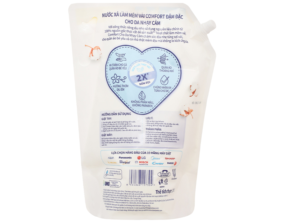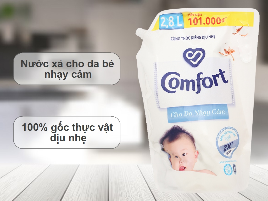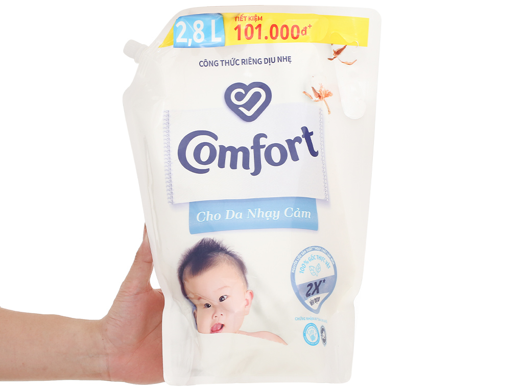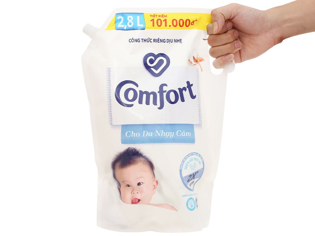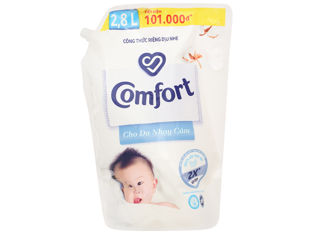 Nước xả mềm vải Comfort cho da nhạy cảm với công thức dịu nhẹ cho quần áo em bé túi 2.8 lít