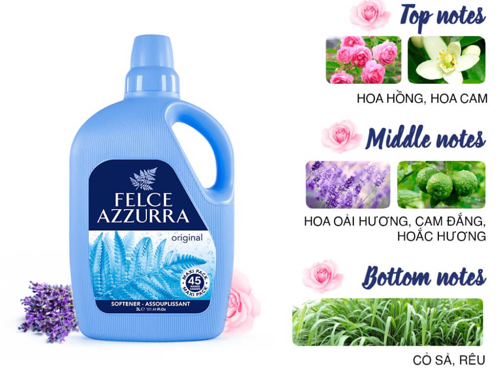 Nước xả vải đậm đặc nước hoa Felce Azzurra hương cổ điển chai 3 lít