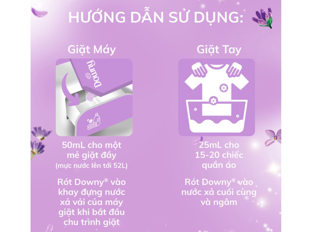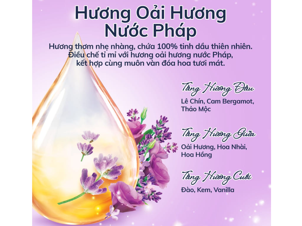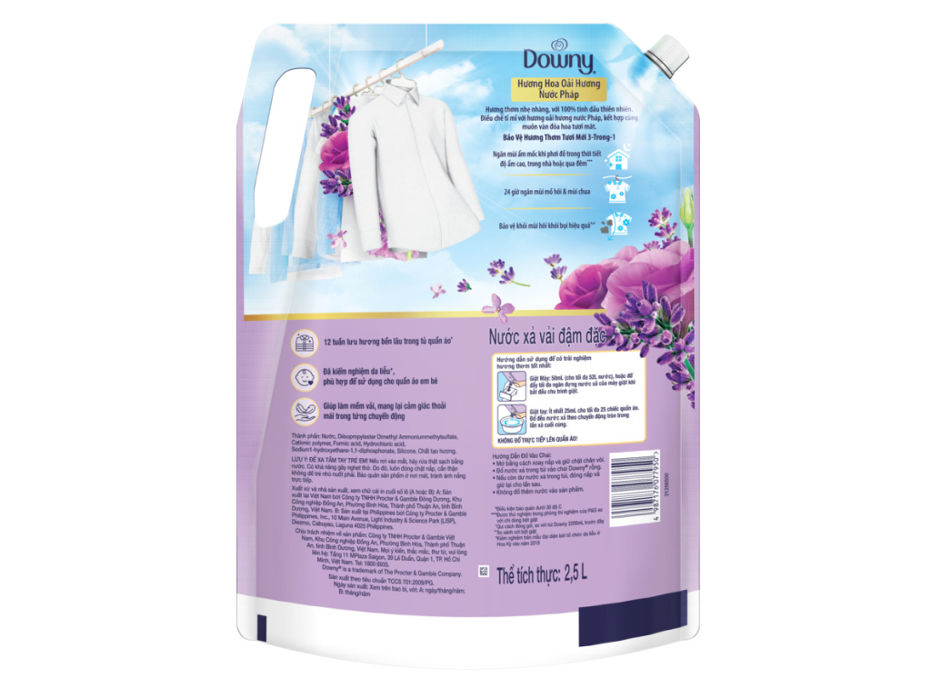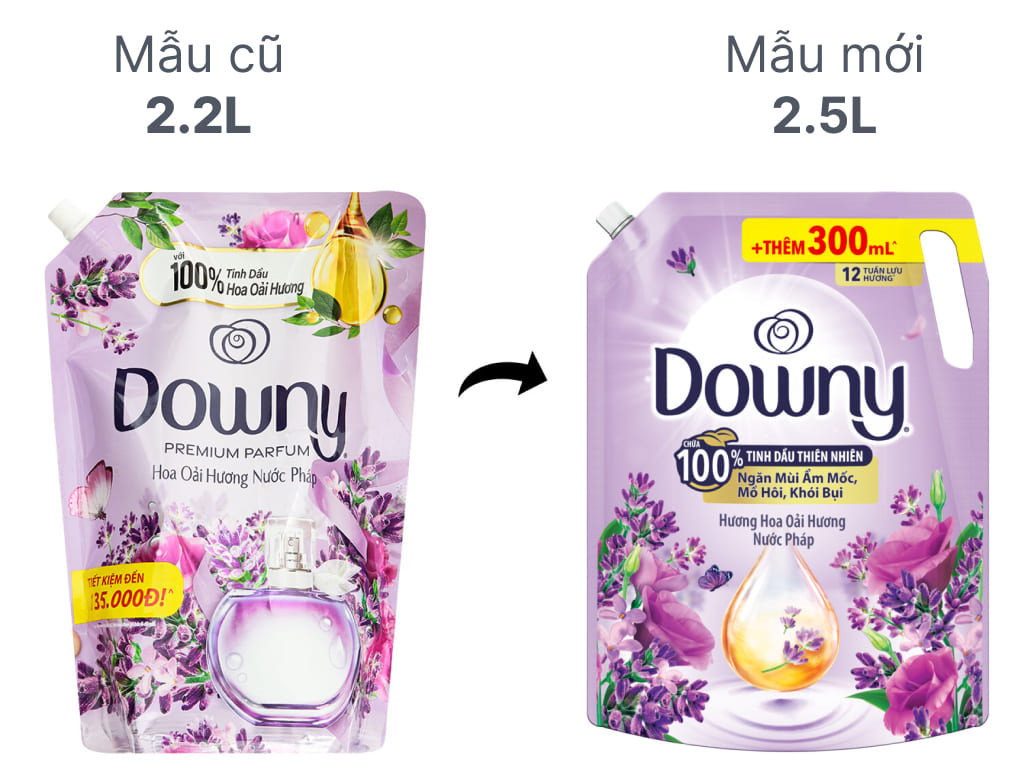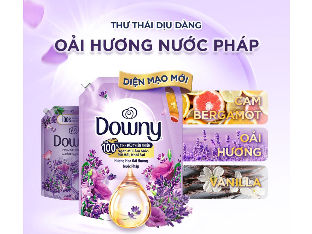 Nước xả vải Downy tinh dầu thiên nhiên hương hoa oải hương túi 2.5 lít