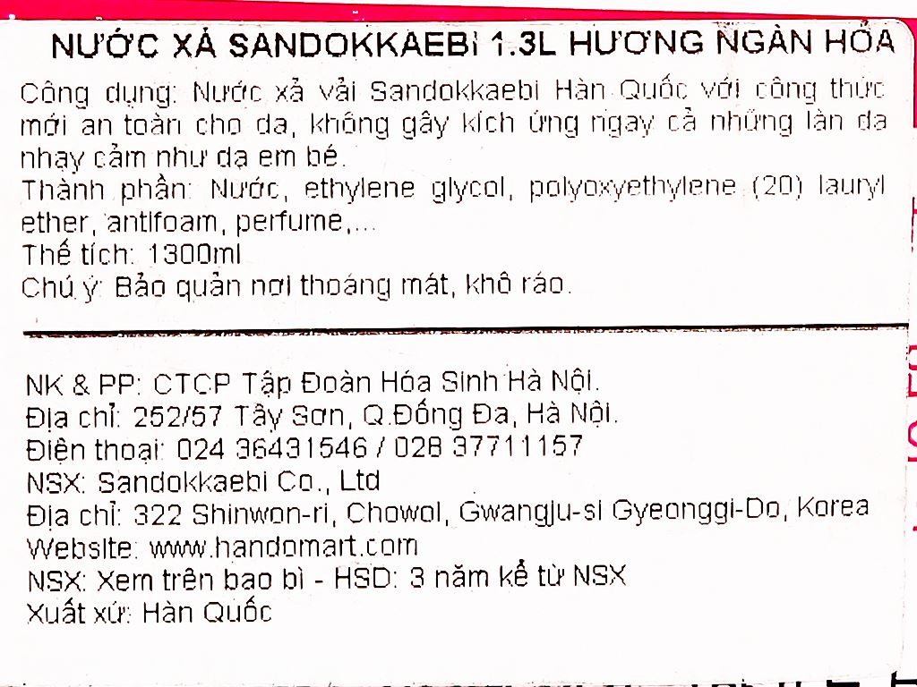 Nước xả vải Sandokkaebi hương ngàn hoa túi 1.3 lít
