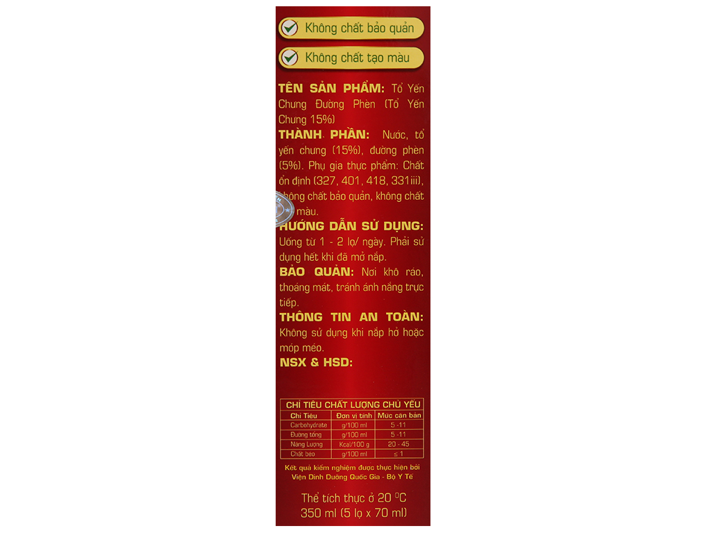Hộp 5 hũ tổ yến chưng đường phèn Song Yến 70ml