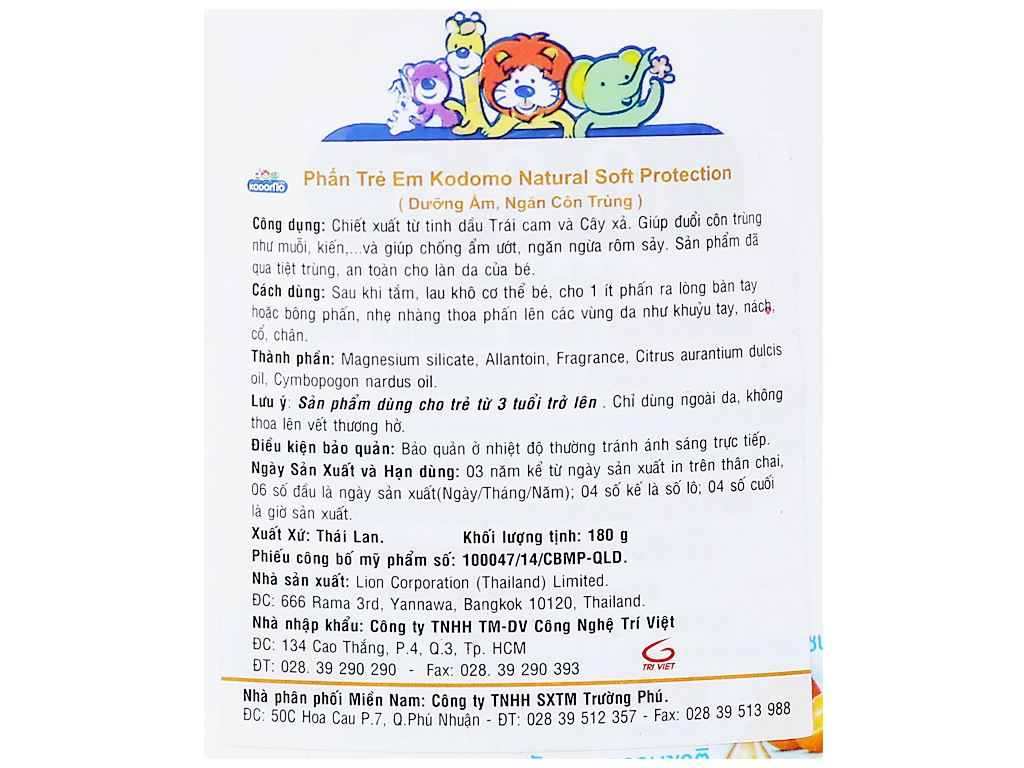 Phấn trẻ em Kodomo dưỡng ẩm ngăn côn trùng 180g