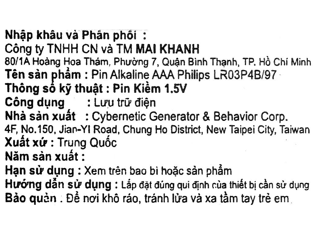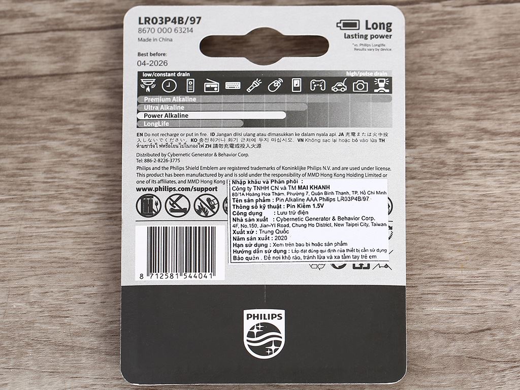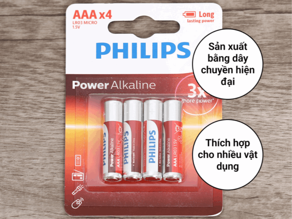 Vỉ 4 viên pin kiềm AAA Philips LR03P4B/97