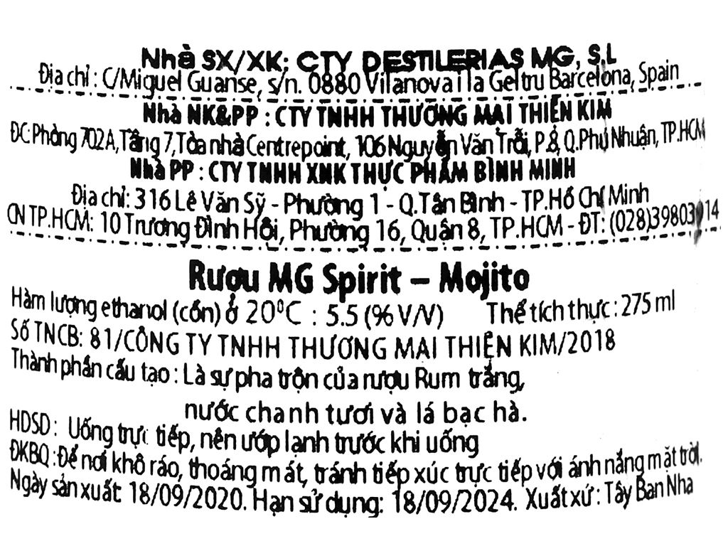 Rượu MG Spirit Mojito hương chanh bạc hà 5.5% chai 275ml