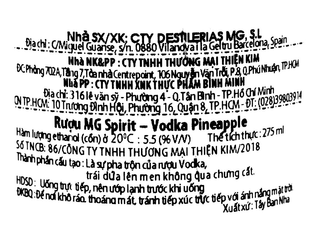 Rượu MG Spirit Vodka Pineapple hương dứa 5.5% chai 275ml