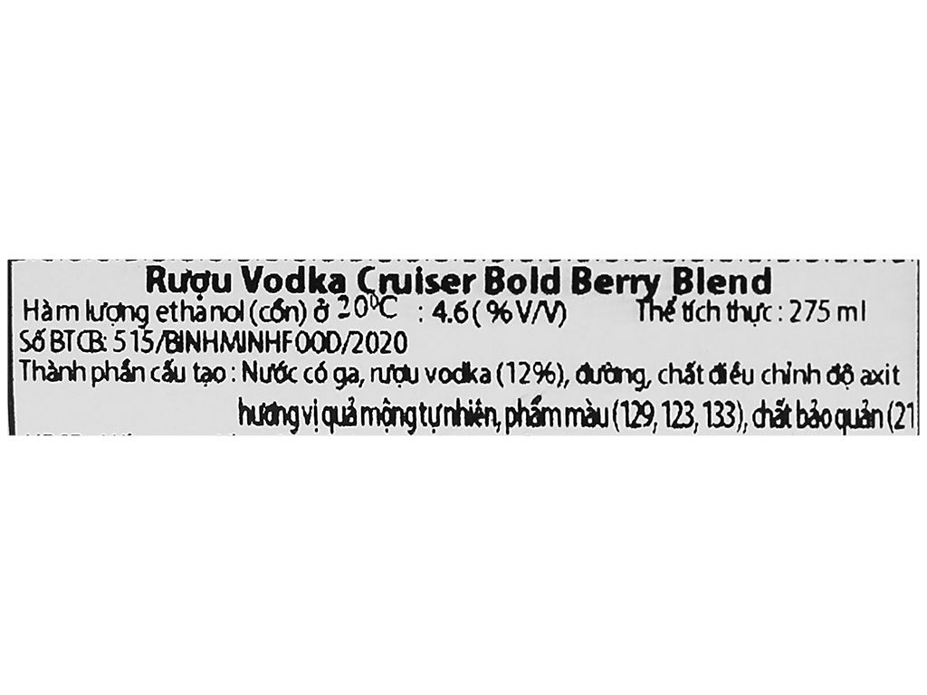 Rượu Vodka Cruiser Bold Berry Blend 4.6% chai 275ml