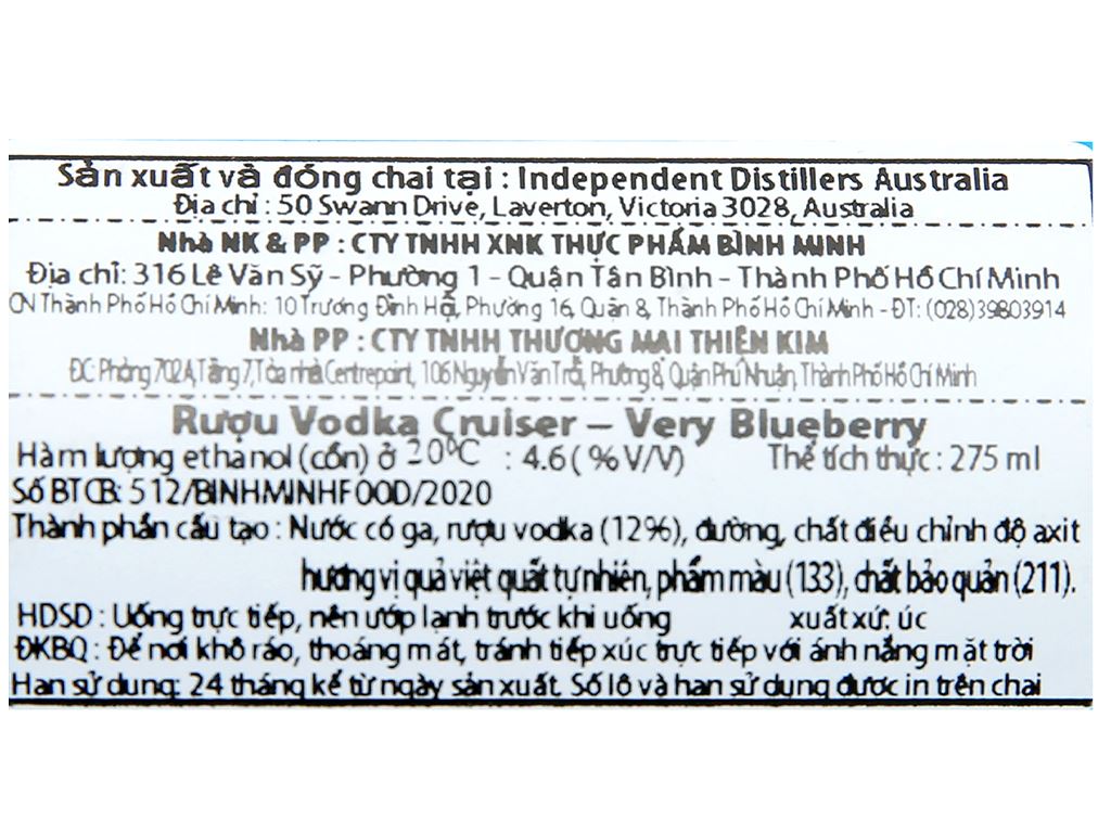 Rượu Vodka Cruiser Very Blueberry 4.6% chai 275ml