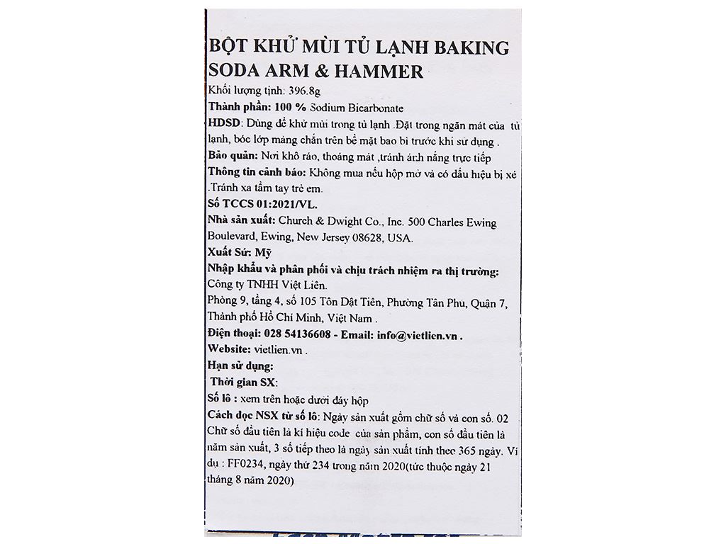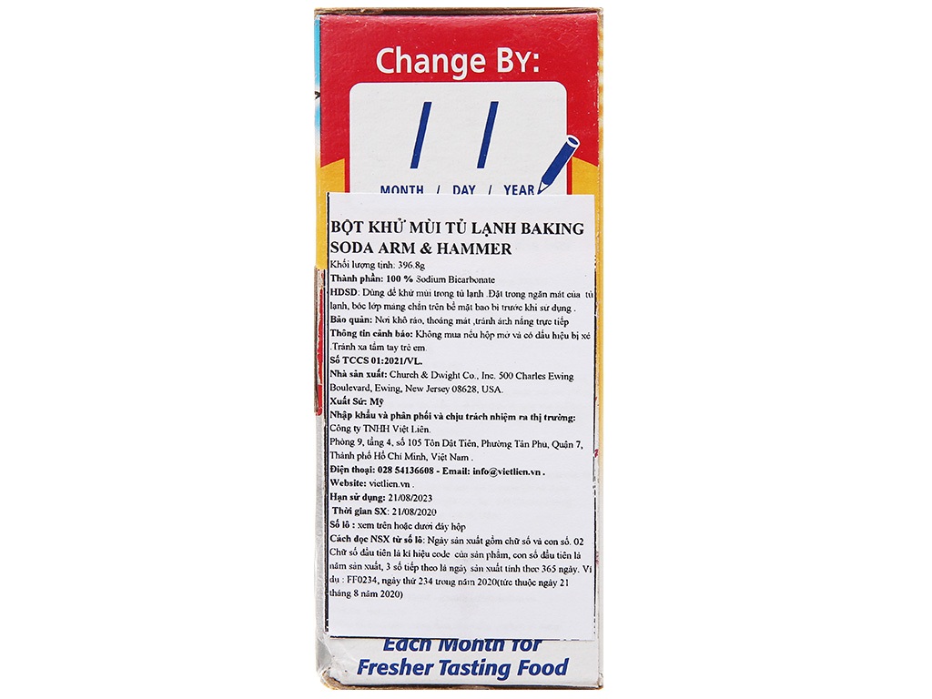 Bột khử mùi tủ lạnh baking soda fridge-n-freezer Arm & Hammer 396.8g