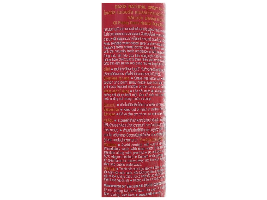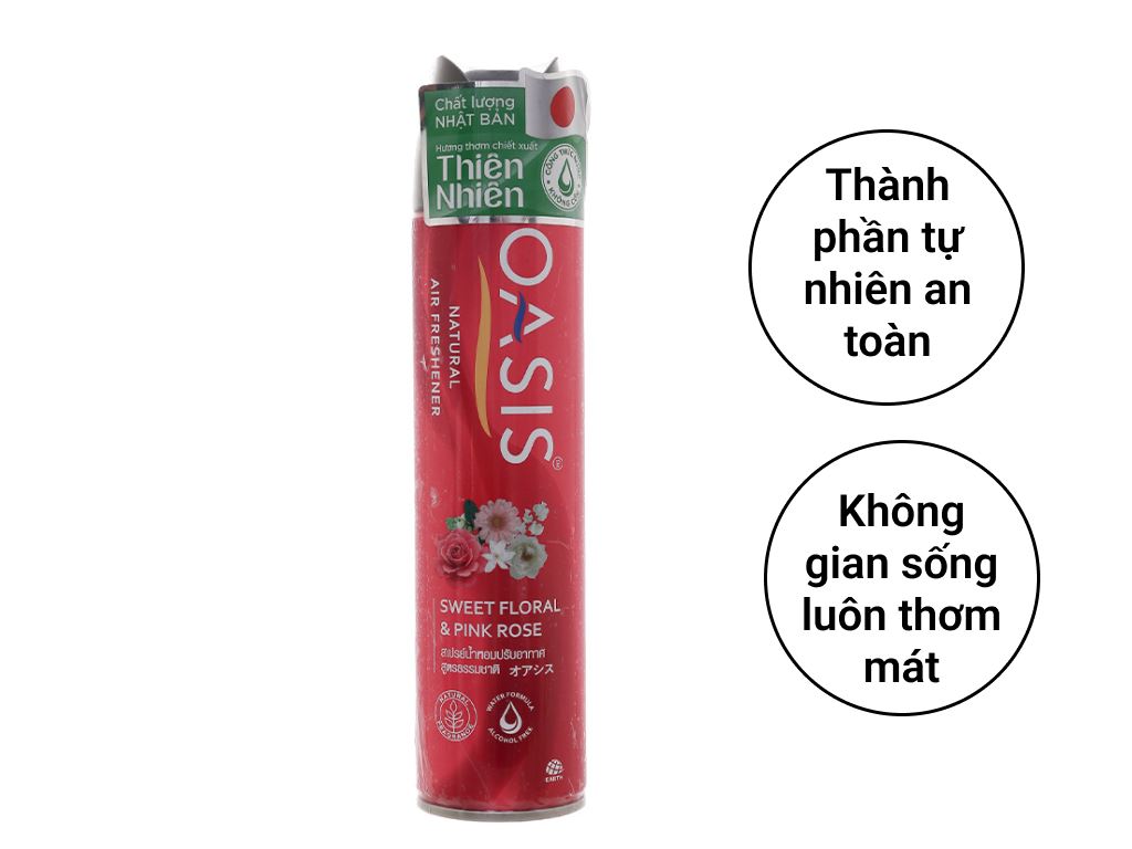 Xịt phòng Oasis natural sweet floral & pink rose 320ml