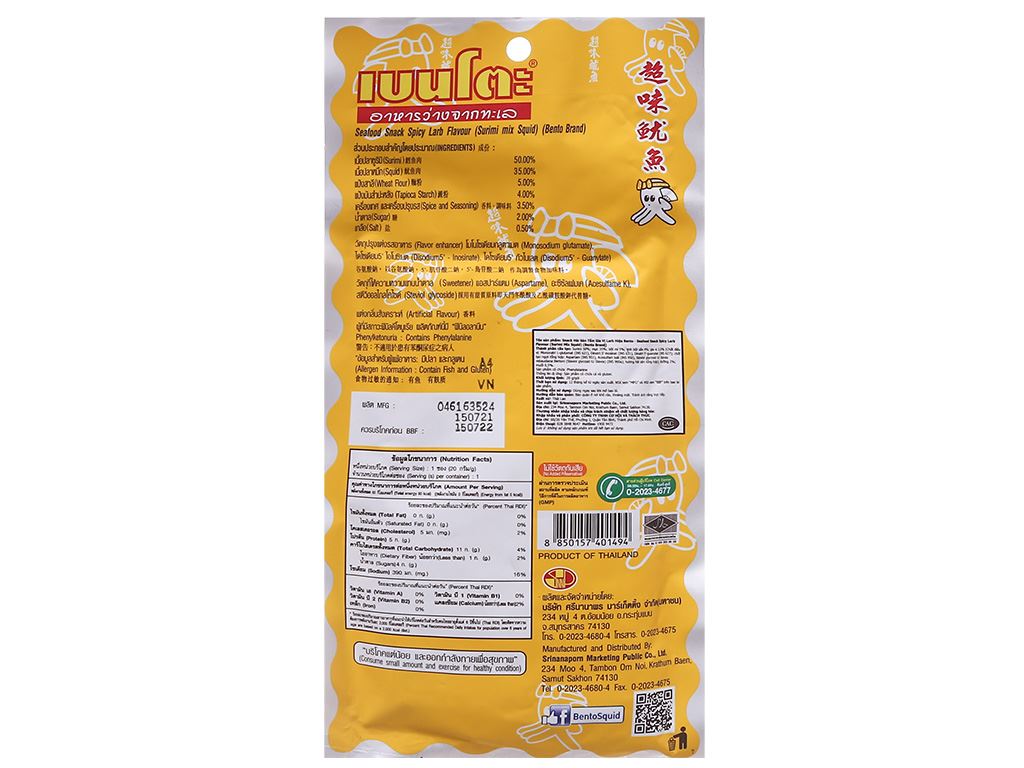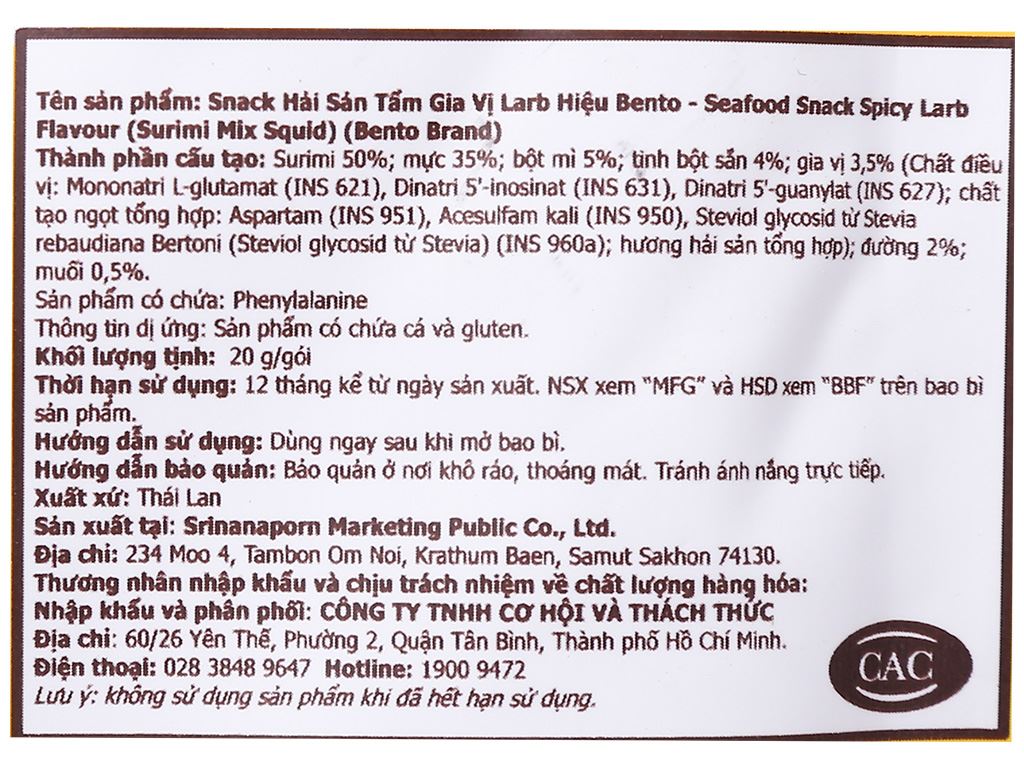 Snack hải sản tẩm gia vị cay Bento Larb gói 20g