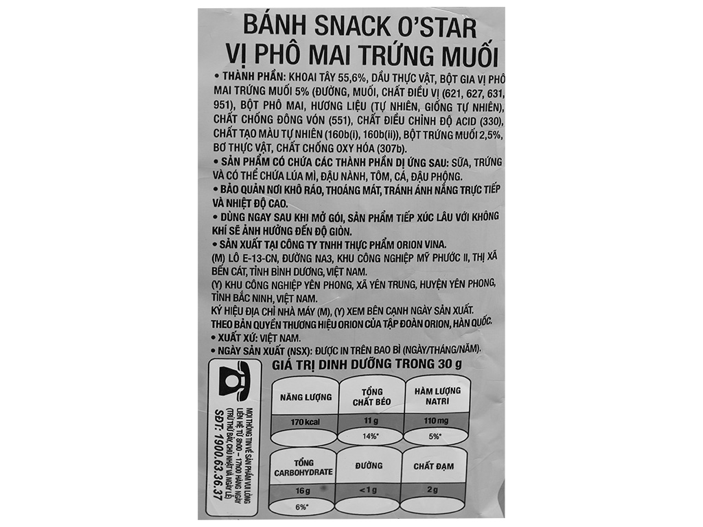 Snack khoai tây vị phô mai trứng muối O'Star gói 90g