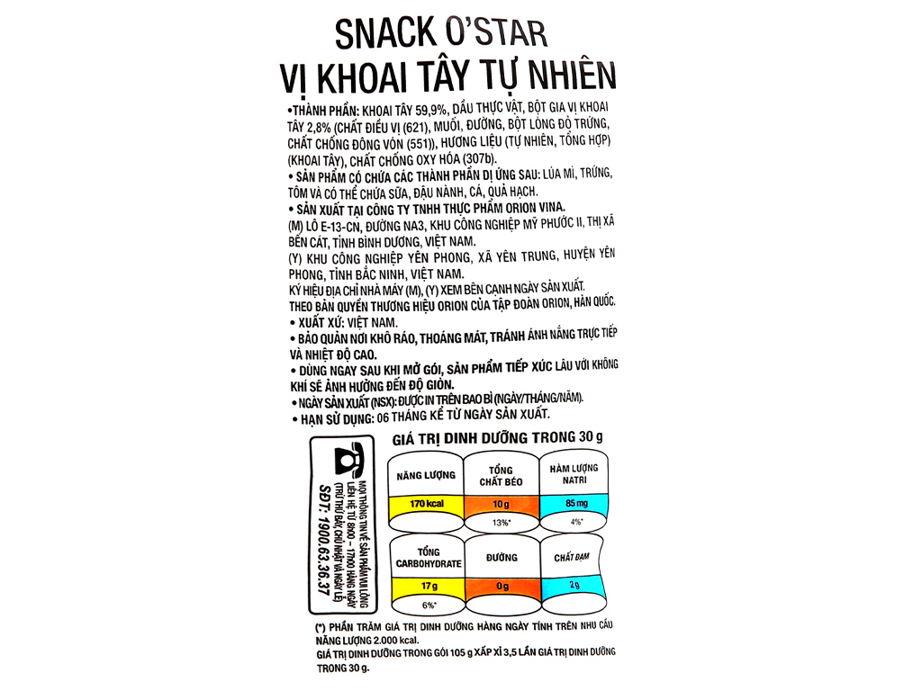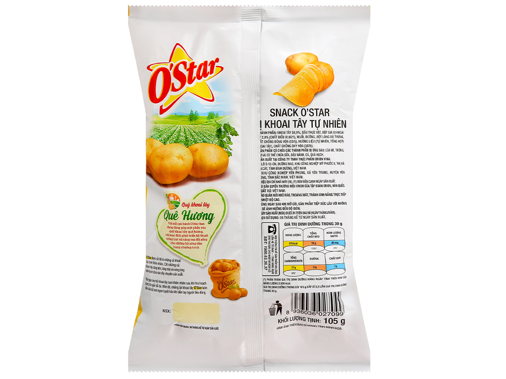 Snack khoai tây vị tự nhiên O'Star gói 105g