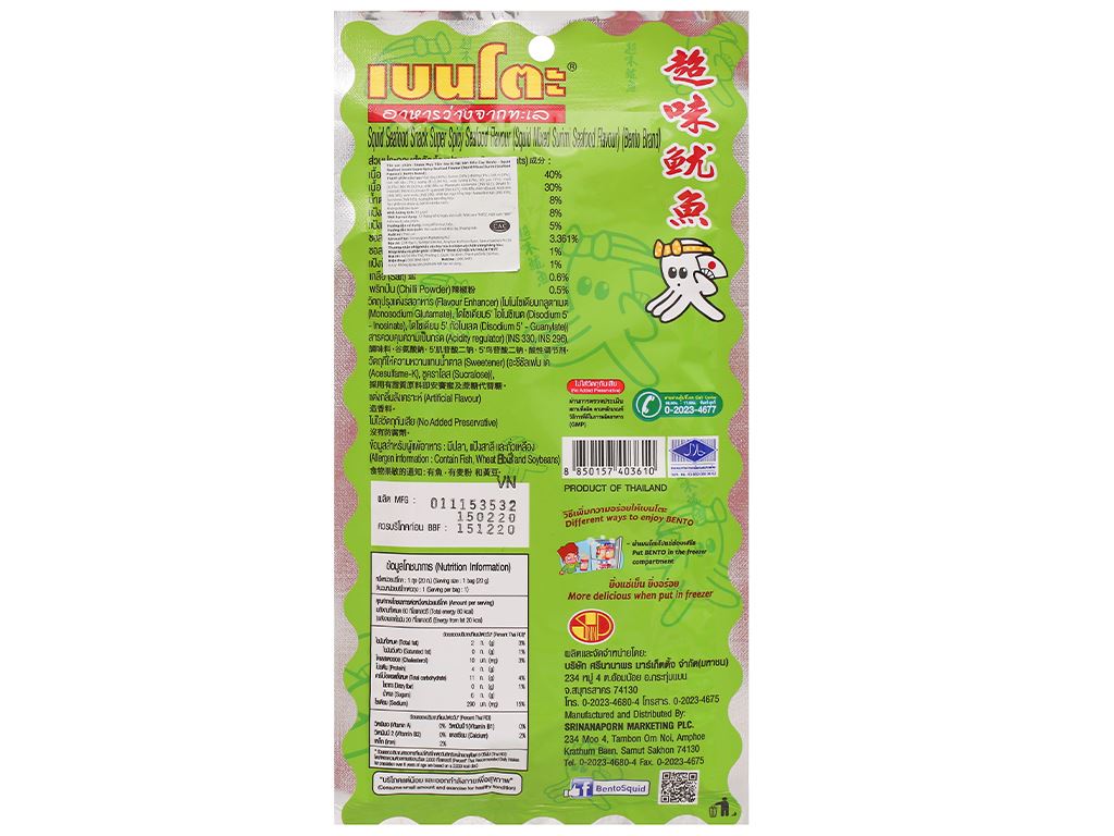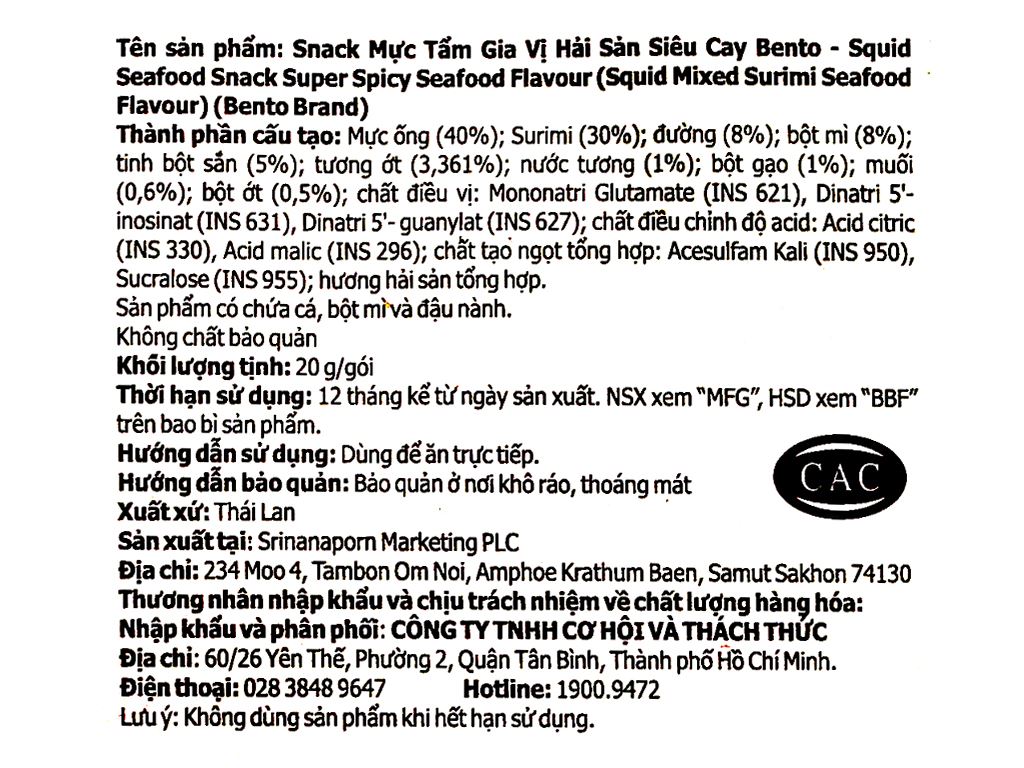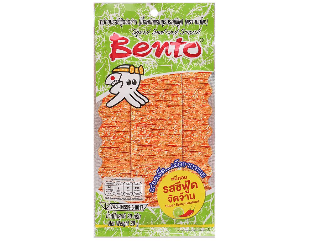 Snack mực tẩm gia vị hải sản siêu cay Bento gói 20g