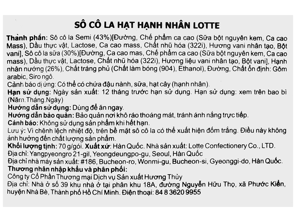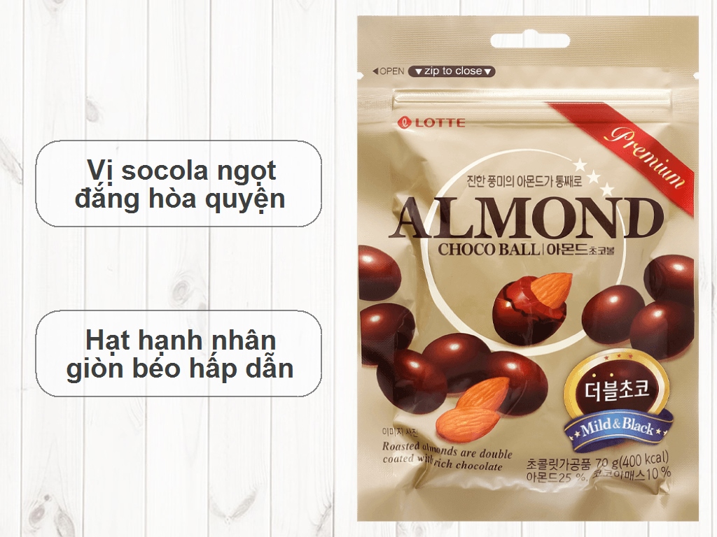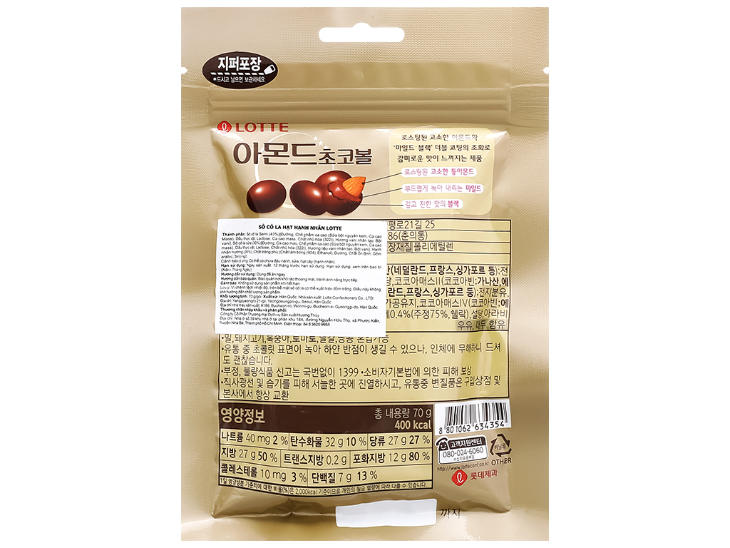 Socola hạt hạnh nhân Lotte gói 70g