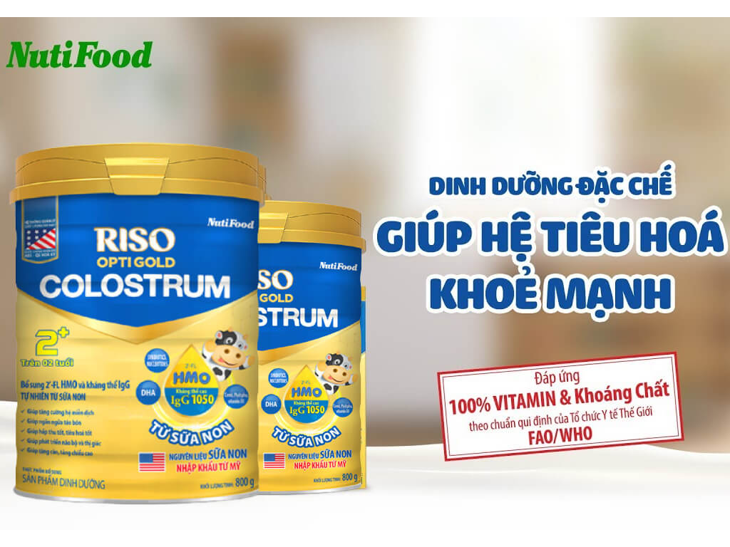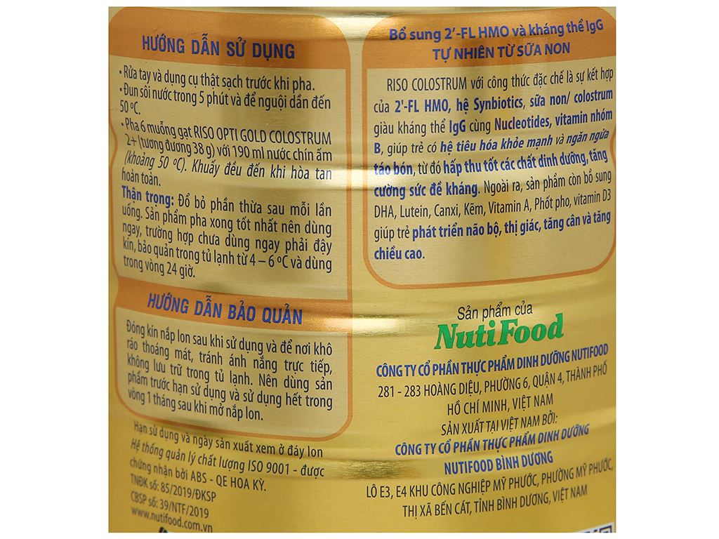 Sản phẩm dinh dưỡng NutiFood Riso Opti Gold Colostrum 2+ lon 800g