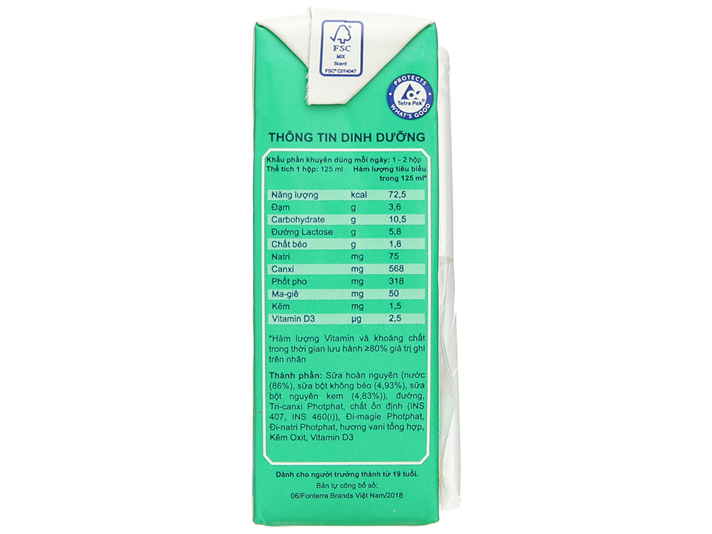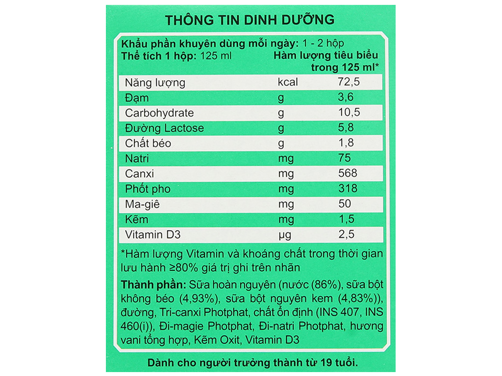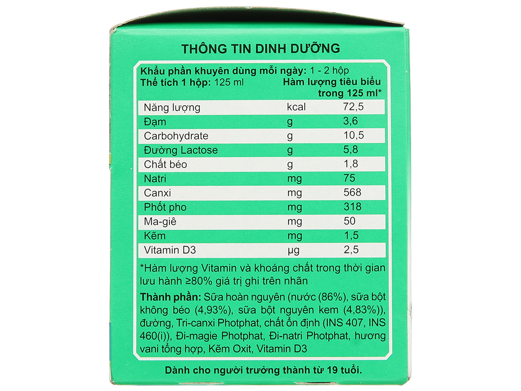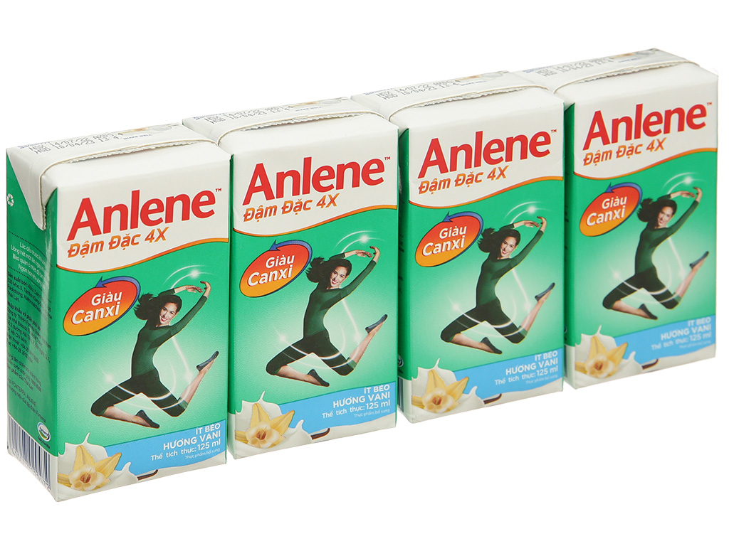 Lốc 4 hộp sữa bột pha sẵn Anlene đậm đặc 4x vani 125ml