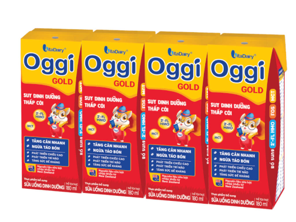 Lốc 4 hộp sữa bột pha sẵn Oggi Suy dinh dưỡng Gold hộp 180ml từ 1 tuổi