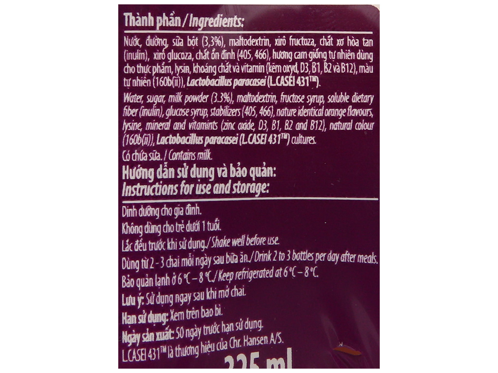Lốc 5 chai sữa chua uống men sống hương cam Vinamilk Probi 65ml