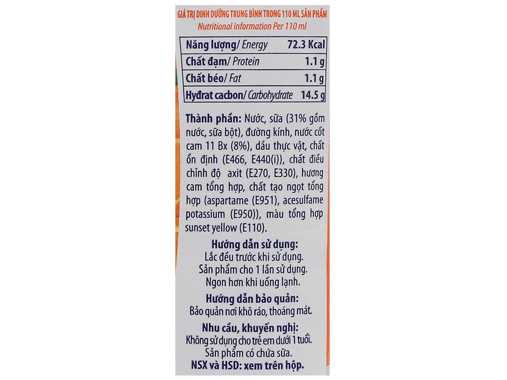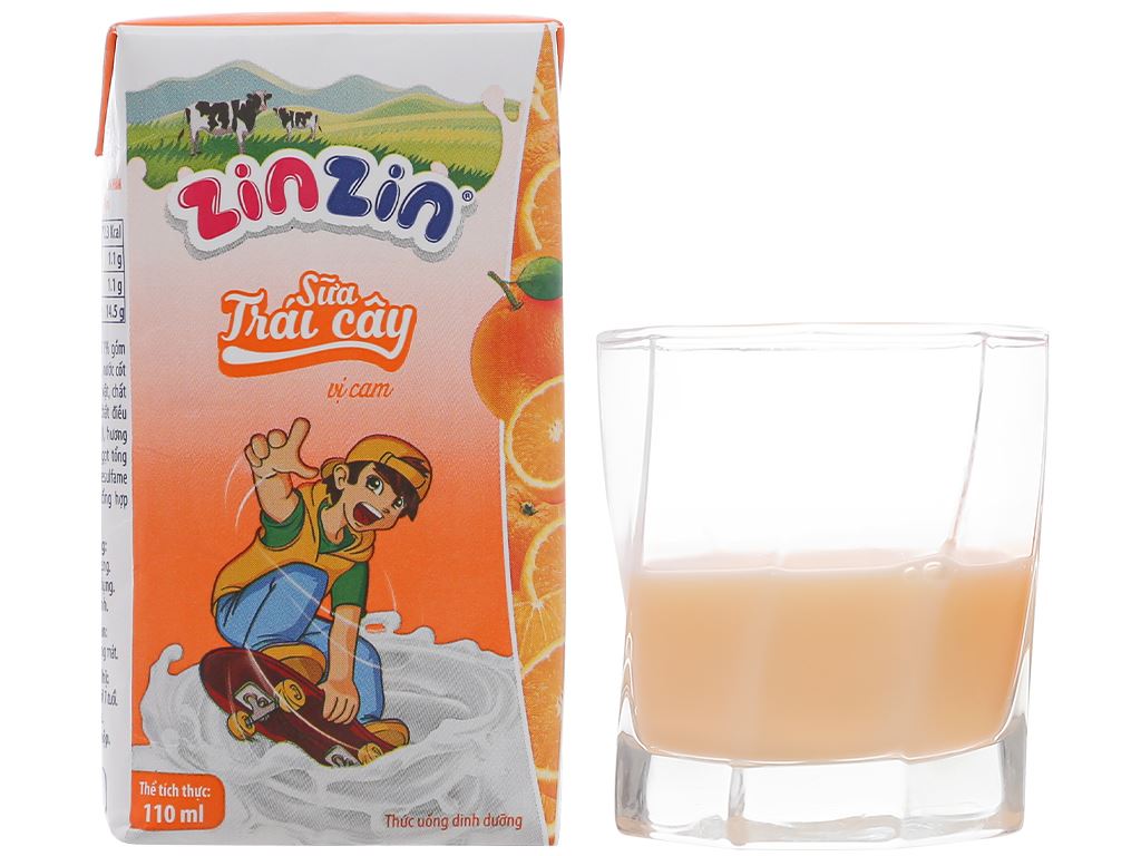 Thùng 48 hộp sữa trái cây vị cam ZinZin 110ml