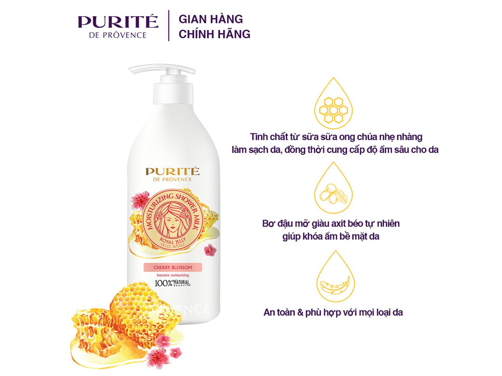 Sữa dưỡng thể Purité dưỡng ẩm sữa ong chúa và hoa anh đào 250ml