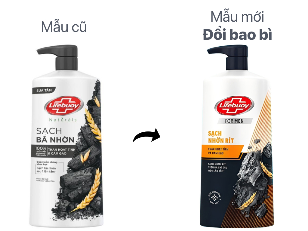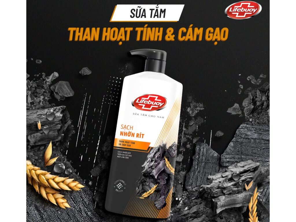 Sữa tắm Lifebuoy Naturals sạch bã nhờn bảo vệ da khỏi vi khuẩn than hoạt tính và cám gạo 784ml