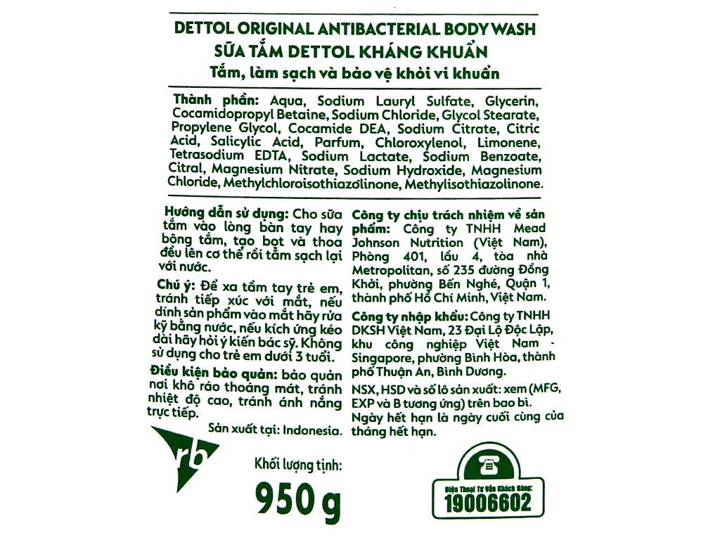 Sữa tắm Dettol Original kháng khuẩn 950g