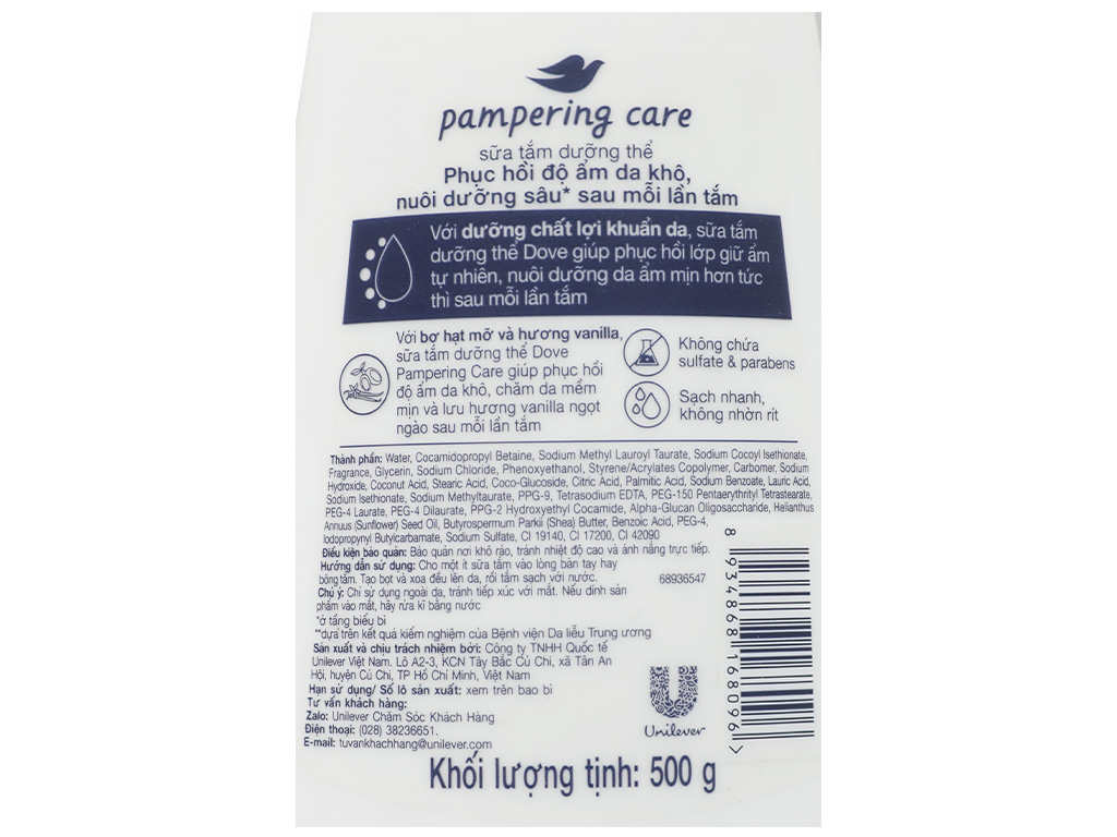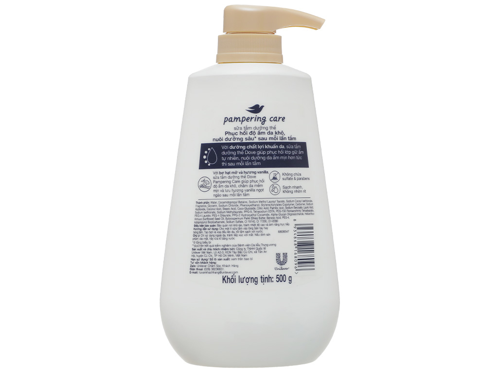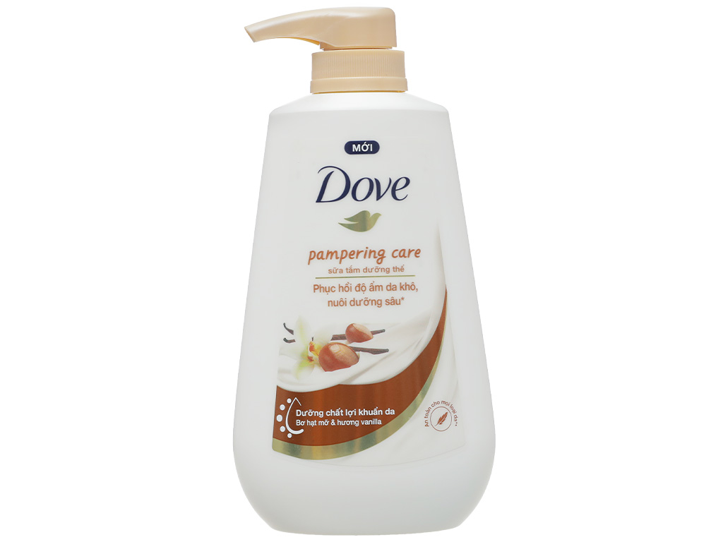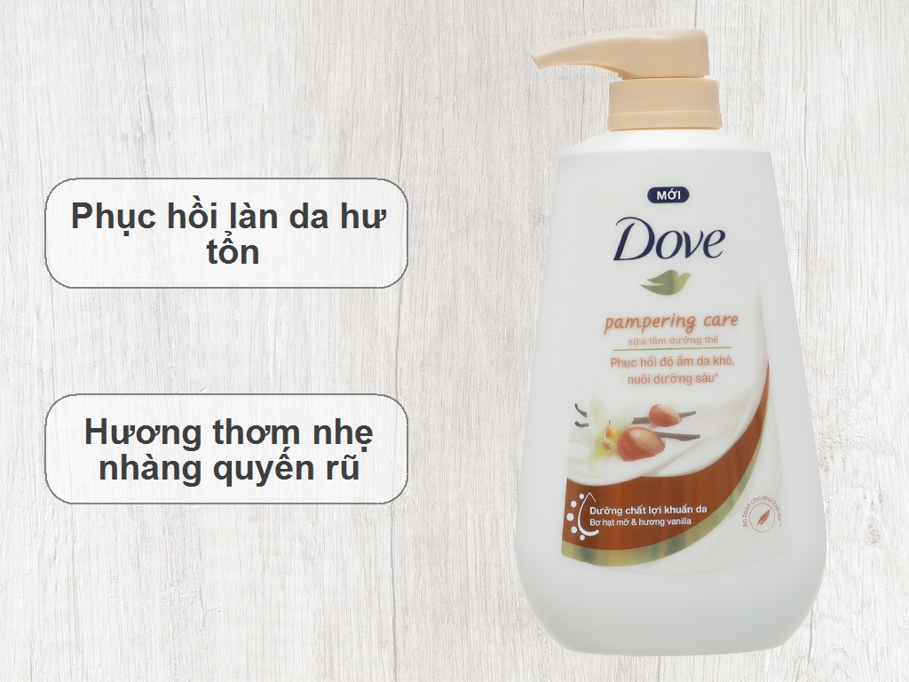 Sữa tắm Dove Pampering Care hương vanilla chiết xuất bơ hạt mỡ dưỡng ẩm phục hồi da khô 500g