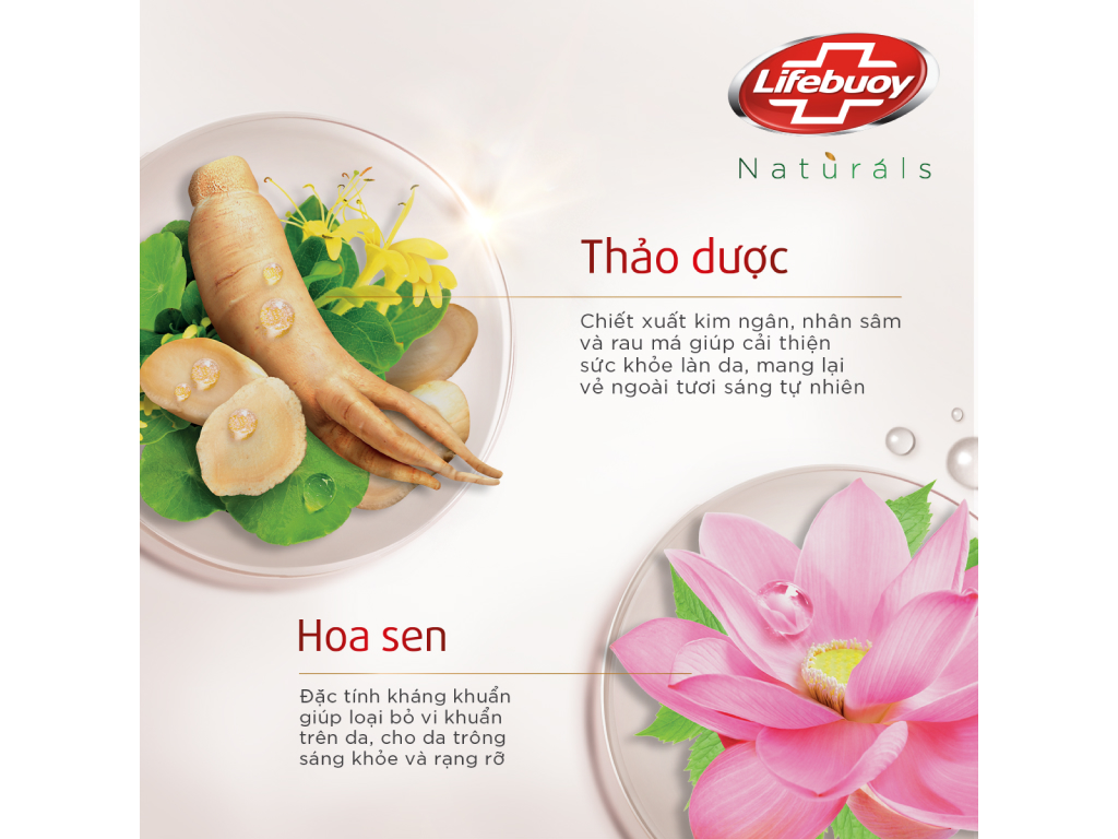 Sữa tắm Lifebuoy Naturals sáng da bảo vệ da khỏi vi khuẩn thảo dược và hoa sen 265ml