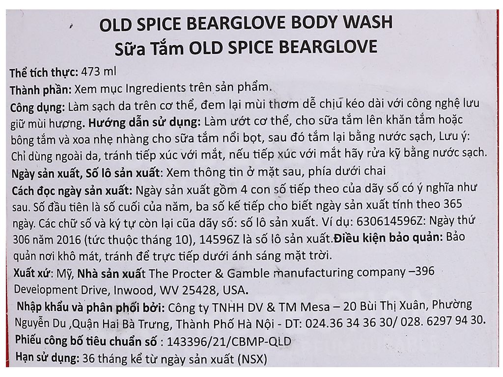 Sữa tắm Old Spice Bearglove 473ml