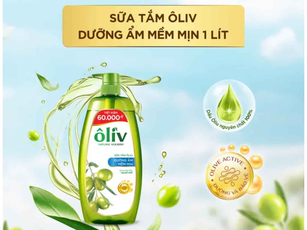 Sữa tắm ôliu Ôliv Natural Nourish dưỡng ẩm mềm mịn 1 lít
