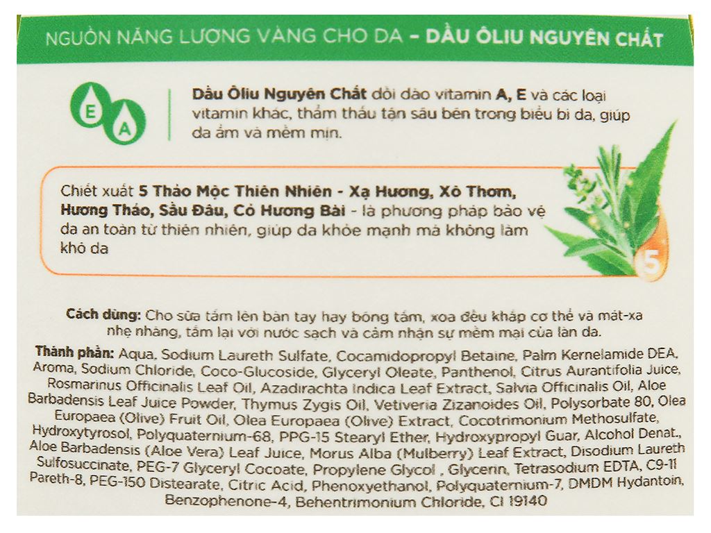 Sữa tắm Ôliv dưỡng da sạch khuẩn 650ml