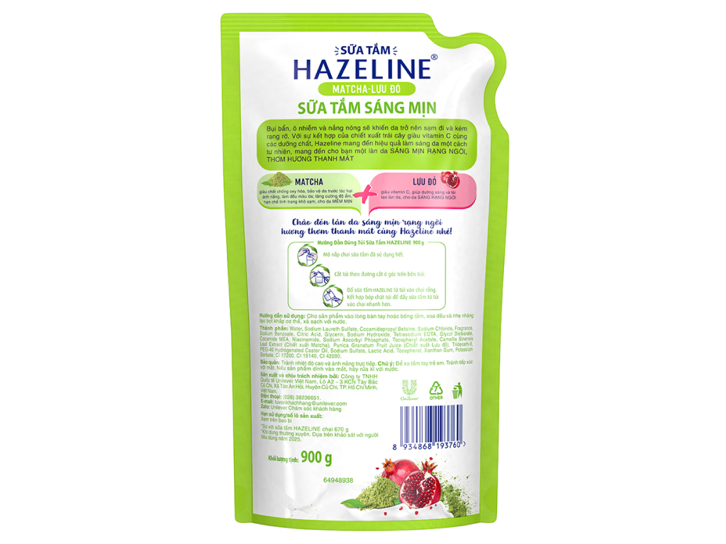 Sữa tắm sáng da Hazeline matcha lựu đỏ 900g