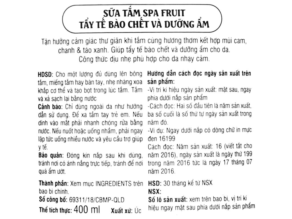 Sữa tắm Spa Fruit tẩy tế bào chết và dưỡng ẩm chai 400ml