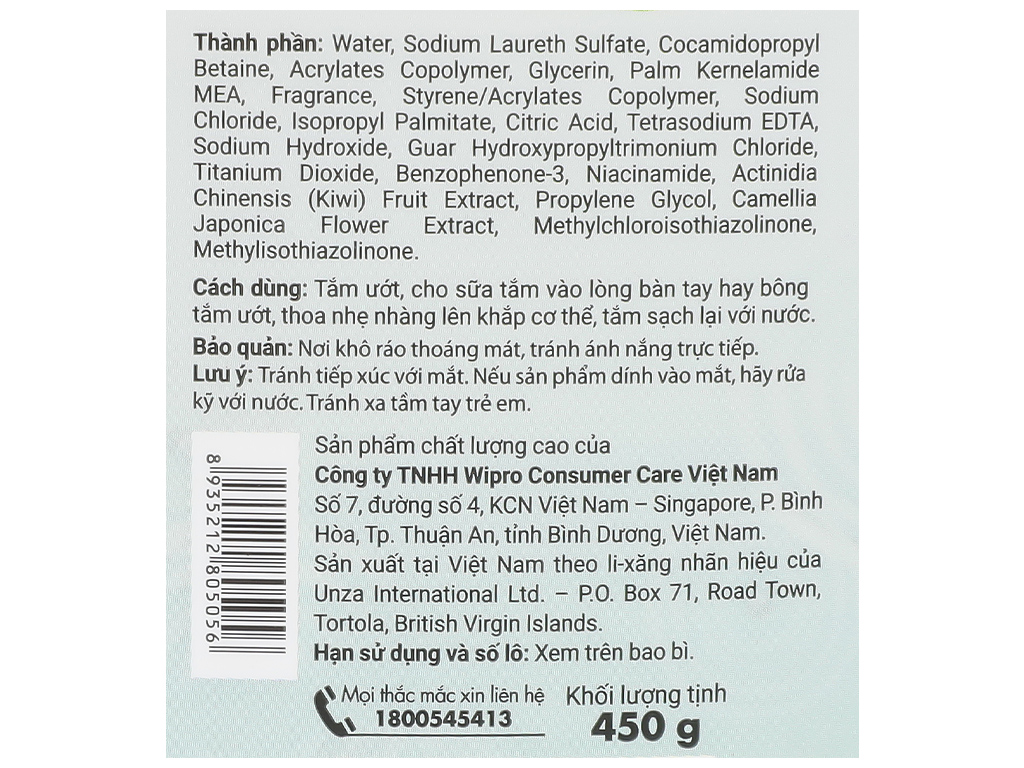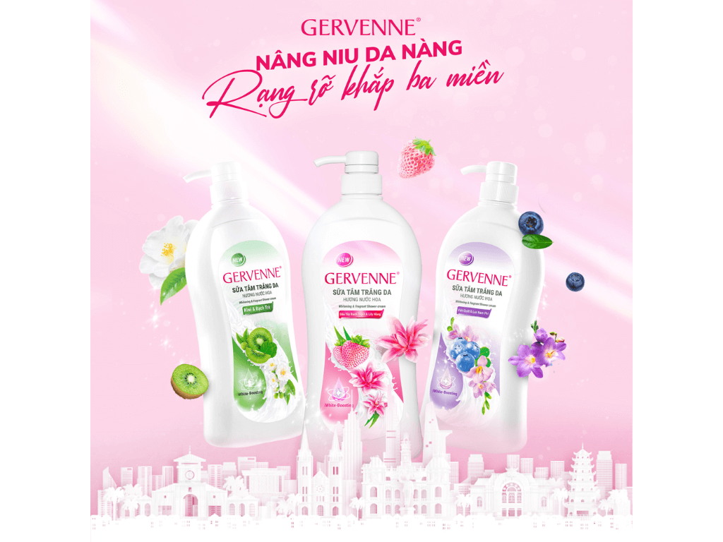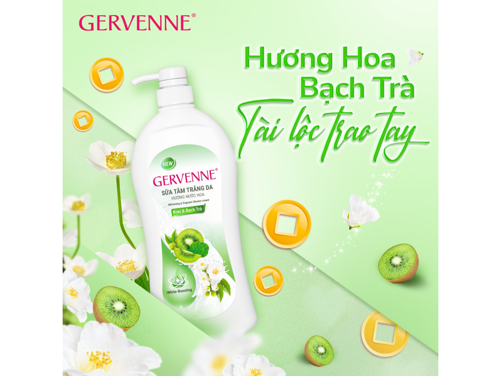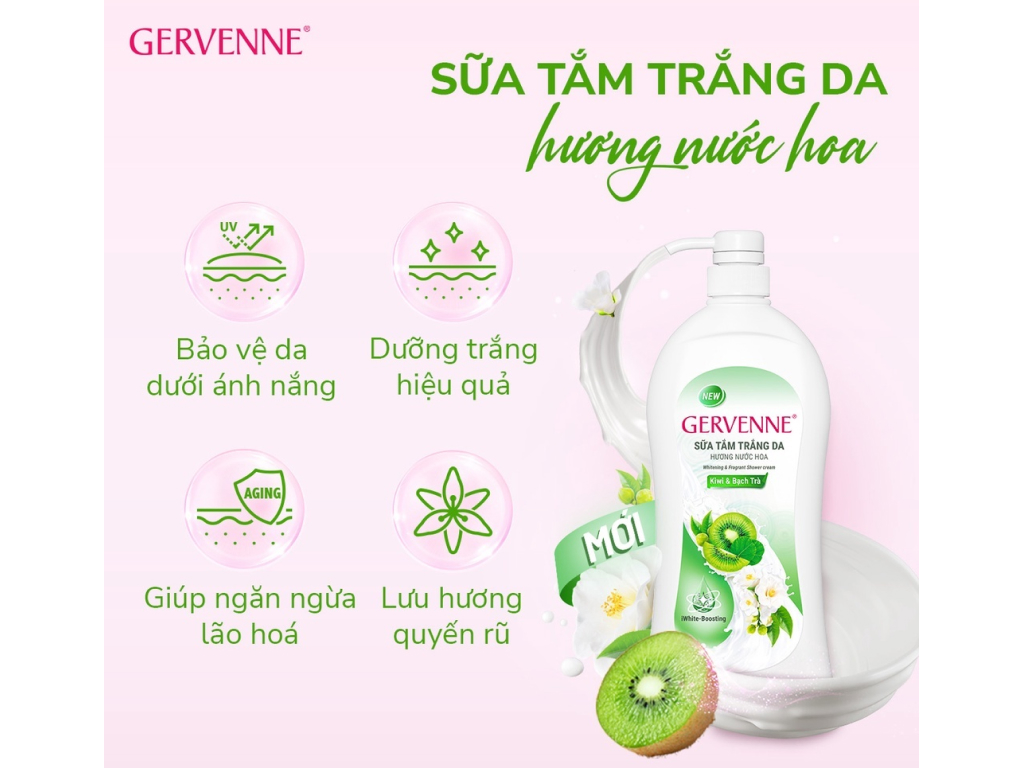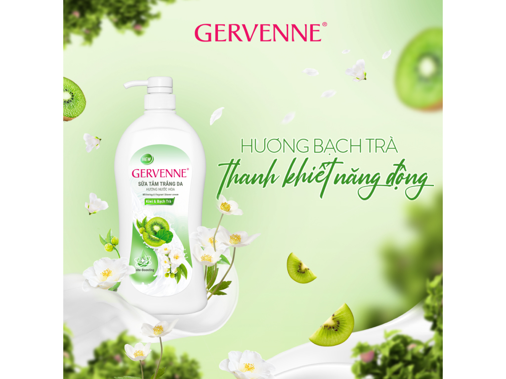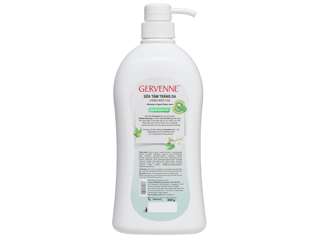 Sữa tắm trắng da Gervenne kiwi & bạch trà hương nước hoa 450g