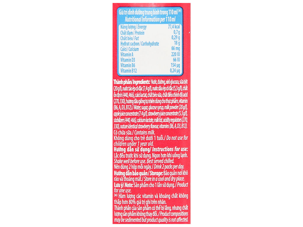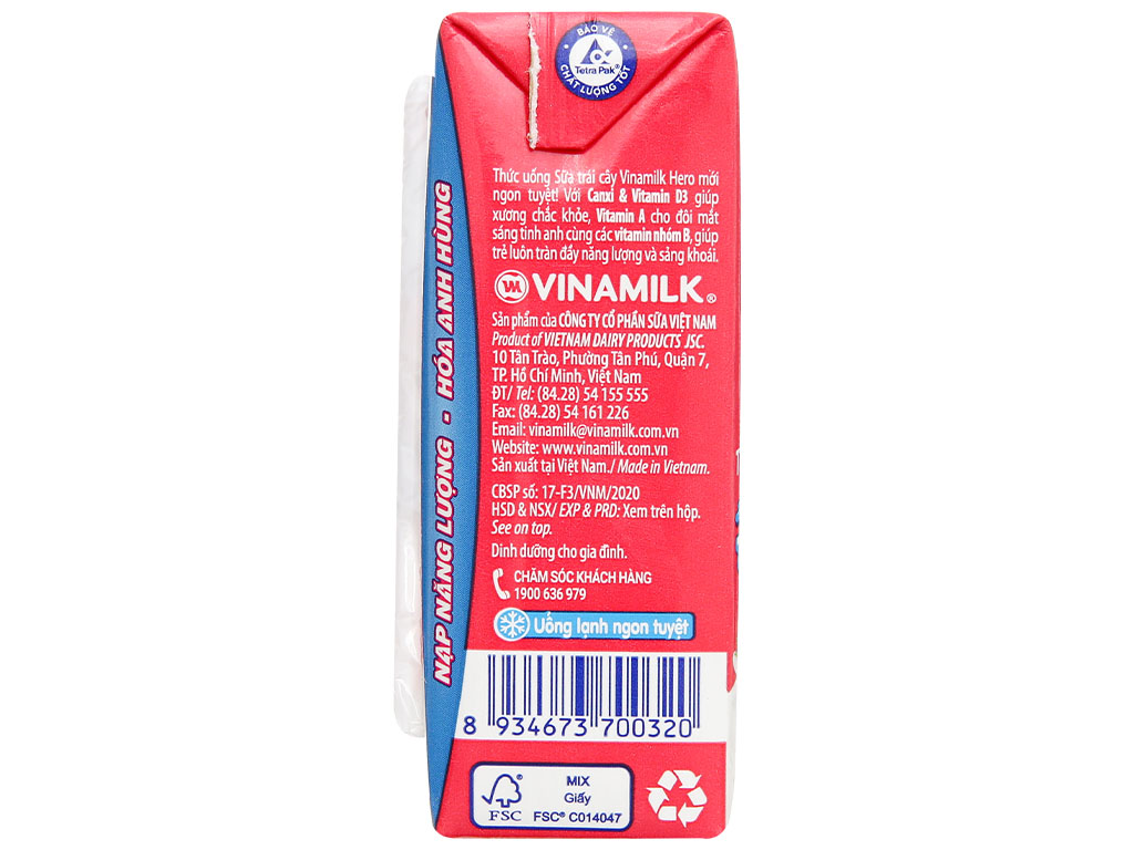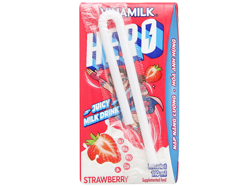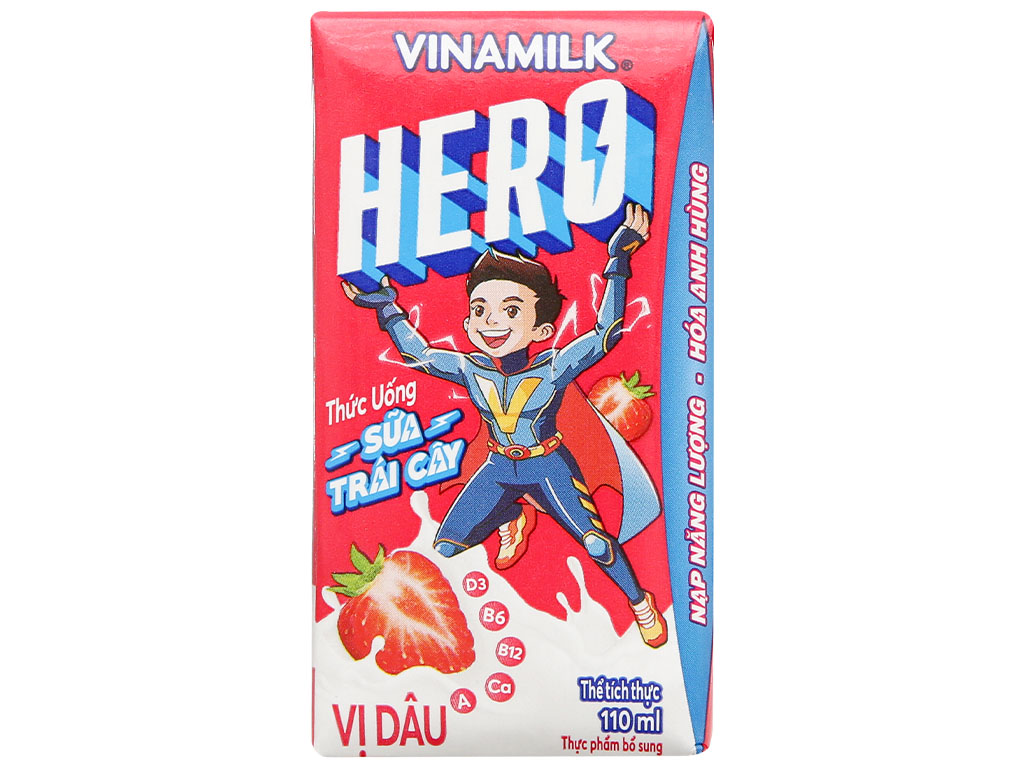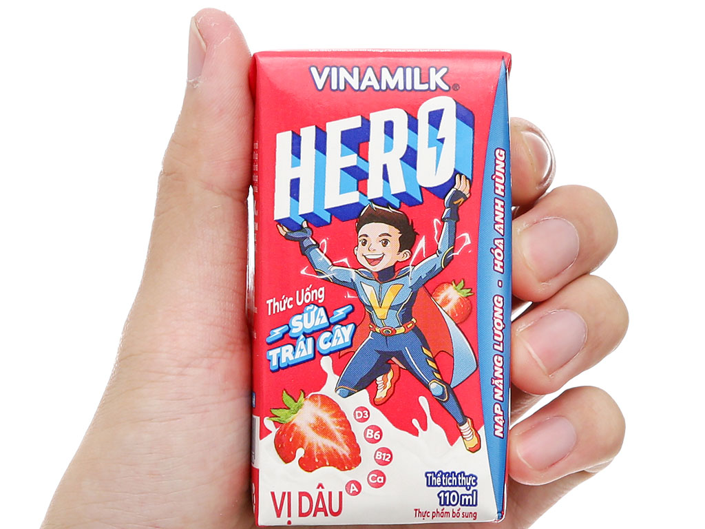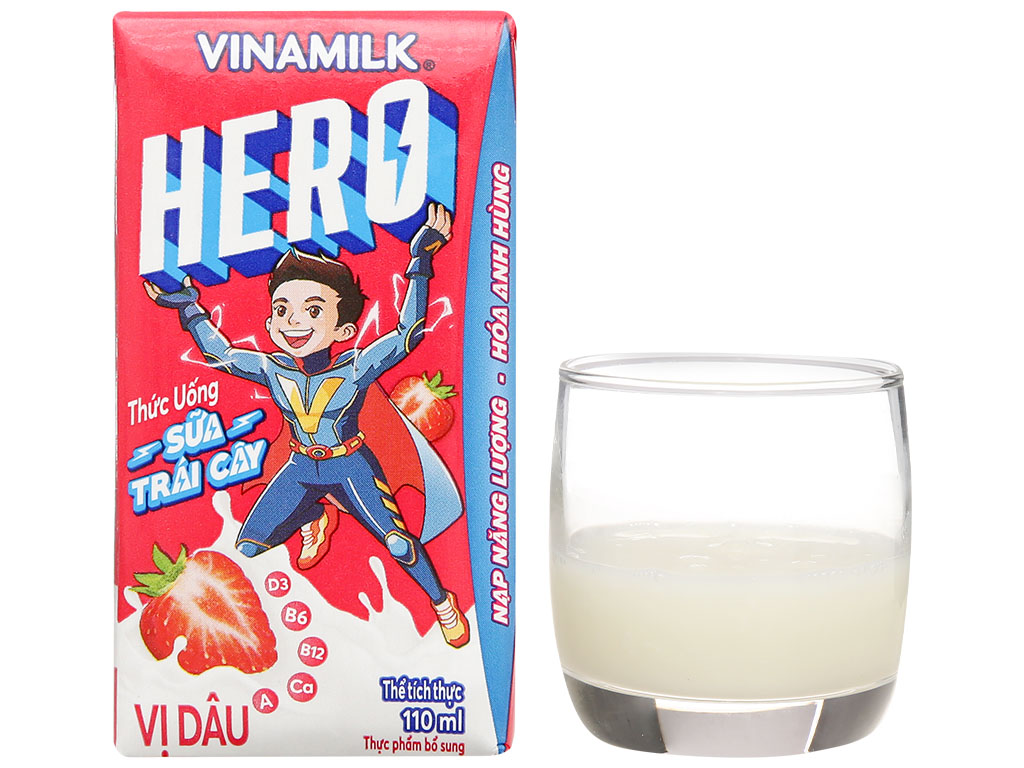 Lốc 4 hộp Sữa trái cây Vinamilk Hero vị dâu 110ml