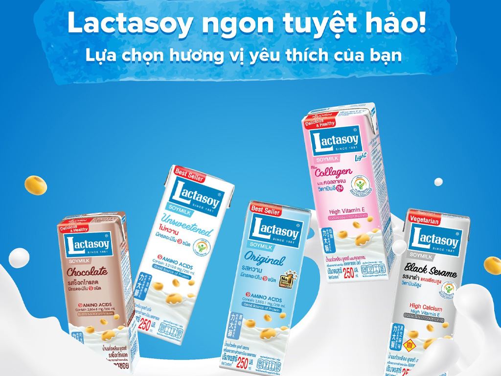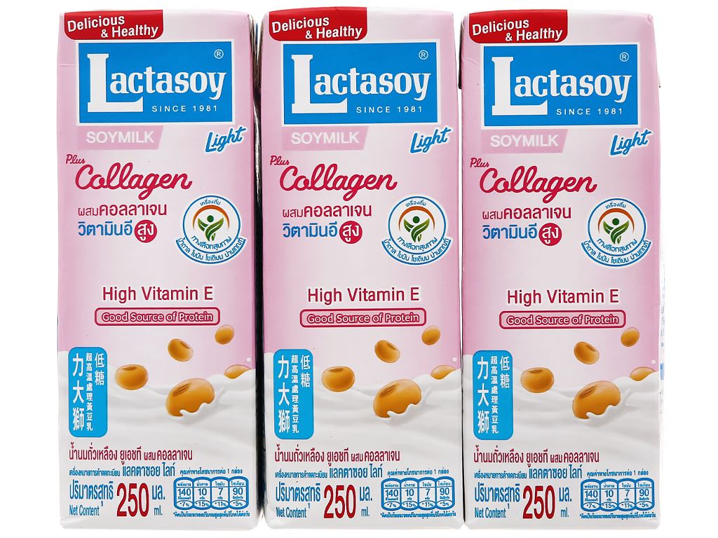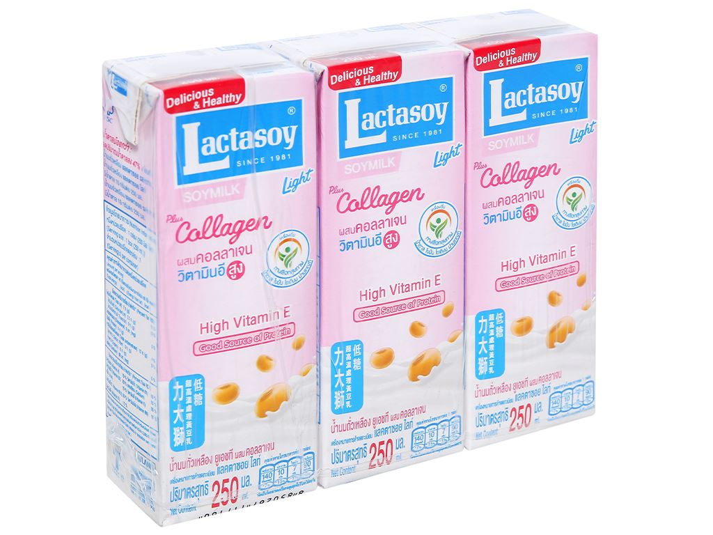Lốc 3 hộp sữa đậu nành collagen Lactasoy 250ml