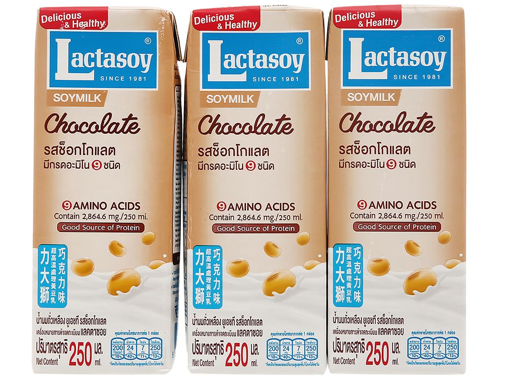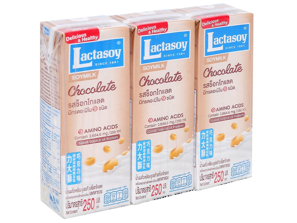 Lốc 3 hộp sữa đậu nành socola Lactasoy 250ml